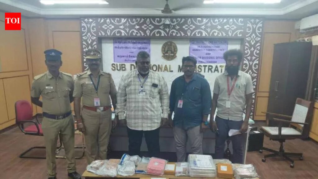 Namakkal: An election flying squad team seized gold, silver, and diamond jewellery worth 2.39 crore in Tiruchengode, in Namakkal district, on Thursday night.The team was conducting vehicle checks on Namakkal Road when they intercepted a delivery van near a private college. The van, belonging to a private firm based in Salem, was heading from Namakkal to Tiruchengode.Officials said the company procures gold, silver, and diamond jewellery from large merchants and delivers them to customers in various towns. During the inspection, the squad found jewellery worth 2.39 crore in the vehicle.Although the consignment carried details about the origin of the jewellery and its delivery destinations, officials found no documents proving payment of GST or other taxes, prompting them to seize the jewellery. The seized jewellery was later handed over to Tiruchengode revenue divisional officer (RDO).As the required supporting documents were missing, the ornaments were confiscated and deposited in the treasury. RDO Lenin said the items could be reclaimed after the submission of valid supporting documents.