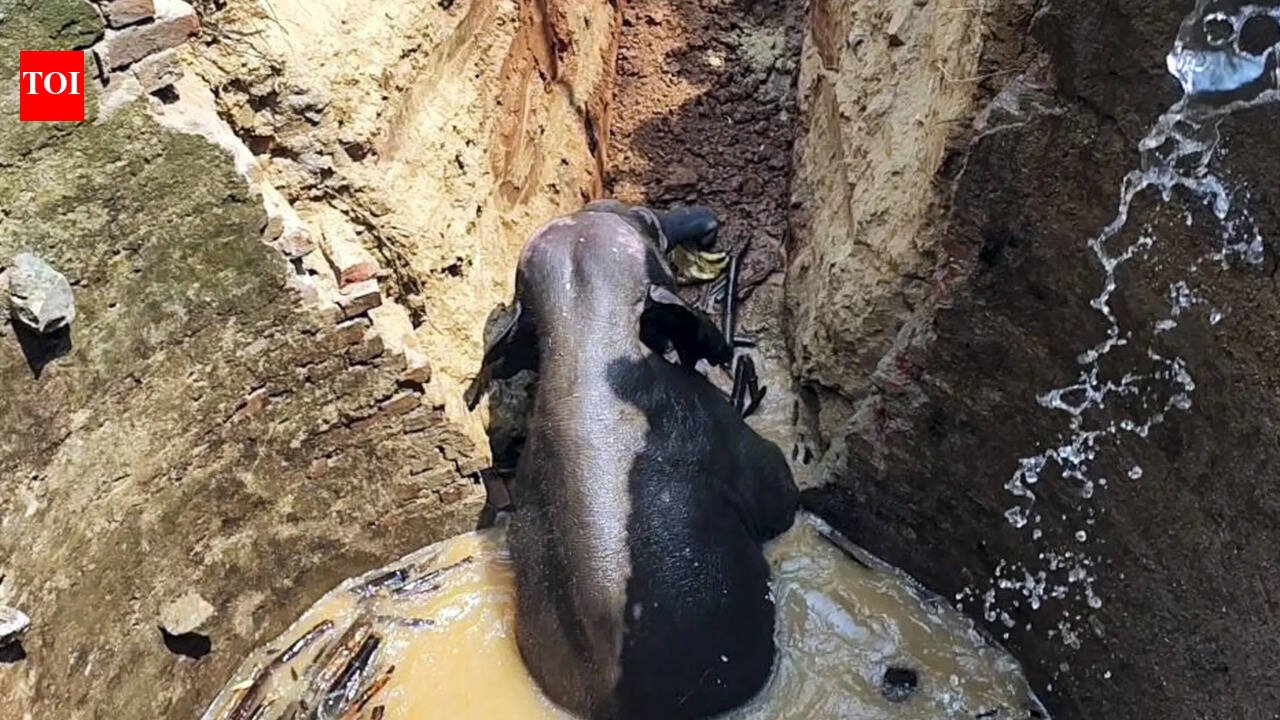 Ranchi: Prompt action coupled with cautious planning, forest department team with the help of locals rescued an elephant from a 45-feet deep well on Ranchi outskirt on Thursday after hours of rescue ops.A sub-adult elephant fell into a well in Saryad village in Bundu forest range on the intervening night of Wednesday and Thursday.“The operation lasted three to four hours after we learnt about it in the morning. Locals alerted about the incident,” said a forester Supriyan Tuti.The elephant was part of a four-member herd.“Soon after we got the information, a rescue team was sent to the area. Initially, we poured water in the well for about 15-16 feet to help the elephant sail up. Thereafter, from one side, we dug the well with the help of an earthmover to make a slanting lane so that the elephant can walk up. Around noon, the elephant came out safely,” said another official, adding that the forest team safely drove the elephant towards the forest where it got reunited with its herd.