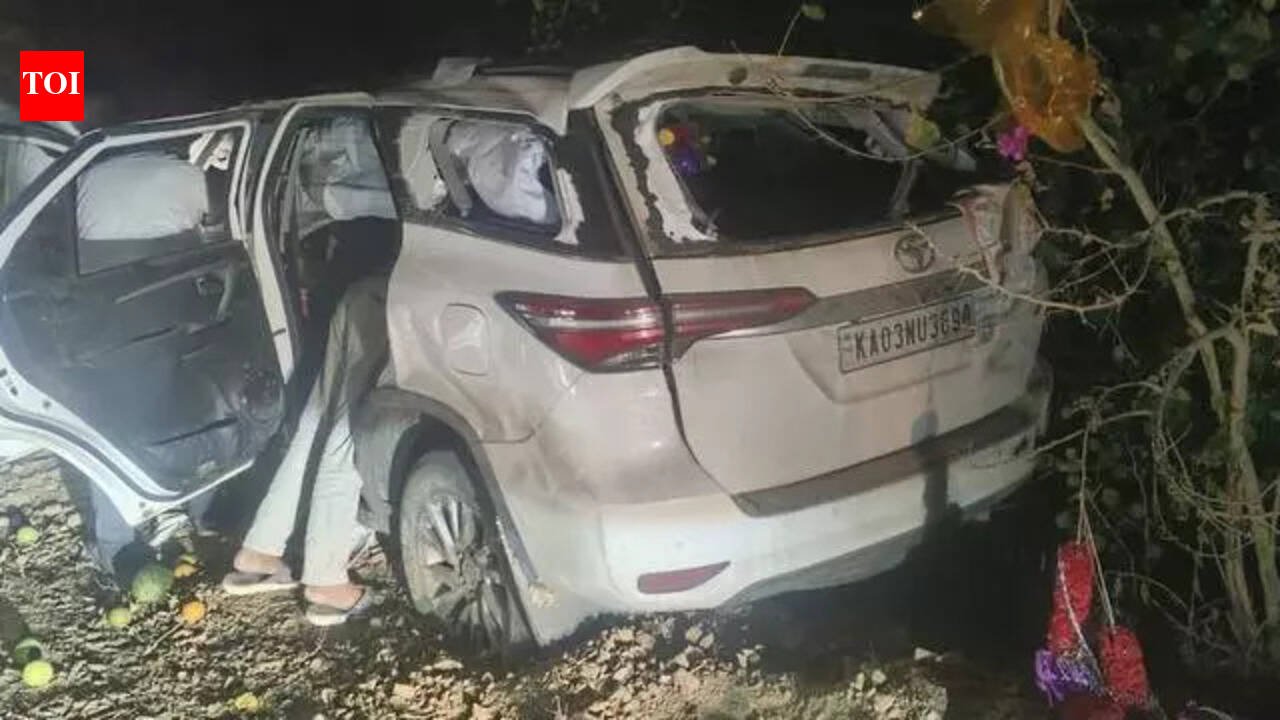 The injured were initially admitted to the Mandya govt hospital for first aid and preliminary treatment. Later, Suresh Gowda and the driver were shifted to Manipal Hospital in Bengaluru for treatment. Sources said their condition is stable. Police have registered a case and are investigating.