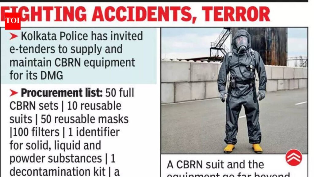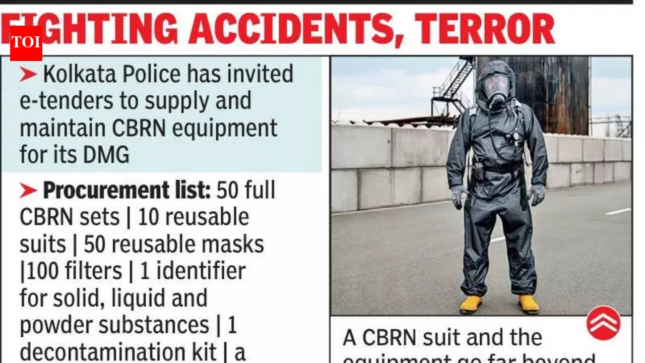 Kolkata: Recent fires, especially those in godowns, including the Anandapur fire that claimed 25 lives, has led Kolkata Police to realise the importance of its disaster management group to be adequately equipped to fight chemical and biological hazards and accordingly, the force has invited tenders for the supply and maintenance of chemical, biological, radiological and nuclear (CBRN) equipment for the personnel.Experts said CBRN suits and equipment went far beyond fighting accidents and that the KP’s modernisation plan was part of tackling modern-day terror threats.The procurement list includes 50 complete CBRN sets, comprising a suit, mask, canister, gloves and overboots; one assorted CBRN identifier for solid, liquid and powder substances; 10 reusable CBRN suits; one decontamination kit; one portable decontamination shower system; 100 CBRN filters; 50 reusable CBRN masks; five area monitors and two multi-purpose handheld radiation analysers. The estimated cost is Rs 8 crore. These equipment, said experts, would help police detect hazards, protect personnel and conduct decontamination, which in turn, would reduce casualties among victims and responders, and secure a scene for forensic examination.The DMG is expected to use the gear in high-risk rescue operations, in which unknown substances, including industrial fires, may be present in places, like warehouses, and in suspected contamination events.The items on the purchase list include detection and identification tools intended to help first responders determine the nature of a substance, and area monitors designed to provide continuous readings within a certain perimeter. The handheld radiation analysers are aimed at enabling on-site screening and assessment during suspected radiological exposure or recovery operations.Security analysts said metropolitan police forces were increasingly being asked to prepare for low-probability but high-impact incidents, including deliberate releases of toxic, industrial chemicals, biological agents or radiological material. Kolkata Police did not specify a timeline for delivery of the objects.