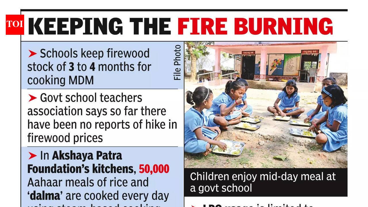 The MDM is provided to over 43 lakh students in these schools, from Sishu Vatika to Class X level. Although concerns over sustainability persist, the arrangement has ensured uninterrupted food supply to the students. “For mid-day meals, almost every school uses firewood because LPG is not a sustainable option. Schools procure firewood stocks for three to four months. Though often criticised for its environmental impact, firewood-based cooking has emerged as an unexpected blessing in the current times,” said general secretary of primary school teachers’ association, Charulata Mohapatra.The school and mass education department last year revised the material cost for cooking MDM to Rs 11.15 and Rs 14.74 per primary and upper primary student respectively. Of these amounts, Re 1 is allocated for fuel per upper primary student and 76 paise per primary student.Even as the department tried to replace firewood with LPG for cooking mid-day meals in school kitchens some years back, it could not be materialised owing to the high volume of food being cooked every day and high associated costs.On the other hand, Akshaya Patra Foundation provides MDM to schools in Cuttack, Khurda, Sundargarh, Puri and Nayagarh districts, and its centralised kitchens use steam-based cooking technology to prepare the meals on a large scale. It feeds 2.5 lakh students across these five districts. “We burn briquettes, which are compressed blocks of agricultural by-products like husk, to fire steam boilers in our kitchens. The steam is used to boil rice, dal and dalma. LPG is only used for tempering the dal and dalma,” said Arabinda Lenka, a general manager with the foundation. This method not only reduces dependence on LPG but also enhances efficiency and hygiene,” he said.The same model is being used to support the govt’s Aahaar meals in Cuttack, Khurda, Jajpur, Jagatsinghpur and Puri districts. The foundation provides 30,000 Aahaar meals across the five districts, and of it, 20,000 meals are supplied in Cuttack and Bhubaneswar alone. Lenka said although the centralised kitchens faced LPG shortage in the beginning when commercial supply was stopped, the district administration later regulated it. Officials in the state urban development agency, which looks into Aahaar implementation, and the school and mass education department said these alternative arrangements have played a crucial role in maintaining continuity of services, especially for vulnerable populations.