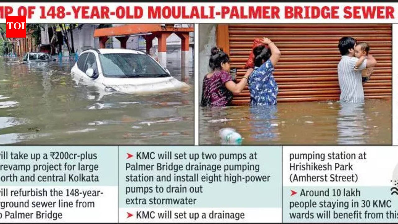 Kolkata: The Kolkata Municipal Corporation will take up a comprehensive drainage upgrade project for the worst waterlogging pockets of north and central Kolkata to give residents relief from inundation every monsoon.According to a KMC official, a Rs 200-plus crore sewerage and drainage development plan for large parts of north and central Kolkata will be taken up to save lakhs of residents from severe waterlogging. According to plans indicated in the KMC budget for the financial year (2026-27), the civic body will take up the refurbishment of the 148-year-old underground sewer line from Moulali to Palmer Bridge drainage pumping station. This brick sewer, with a 2,400 mm diameter, is set to undergo a major revamp. After completion of the sewer refurbishment and rehabilitation project, over 10 lakh people across 30 KMC wards will be spared flooding during monsoons, said a KMC official.Since the capacity of the underground ‘trunk’ sewer line will be enhanced after the special desilting project, the KMC sewerage and drainage department decided to upgrade Palmer Bridge drainage pumping station to take the extra load of storm water from several north and central Kolkata neighbourhoods. “We decided to set up two major pumps at the drainage pumping station and install eight high-power pumps. This exercise will significantly enhance the capacity of the drainage pumping station, and water from north and central Kolkata will recede at a faster pace,” said a KMC official.A civic official said residents of Lenin Sarani, APC Roy Road, Chittaranjan Avenue, Camac Street, AJC Bose Road, Park Street, Loudon Street, Rawdon Street, Rafi Ahmed Kidwai Road, Ripon Street, Amherst Street, and Bidhan Sarani, will benefit from one of the biggest drainage upgrade projects.KMC expedited its construction of a drainage pumping station at Hrishikesh Park, which will take care of the waterlogging woes of several adjoining areas like Amherst Street, Sukea Street, Thanthania, and other adjacent neighbourhoods. This drainage pumping station is being set up in addition to an already constructed pumping station as part of a drainage augmentation project.Apart from this, the KMC sewerage and drainage department took up the development of a storm water drainage system along Goabagan Street and Iswar Mill Lane from Sahitya Parishad Street to Beadon Street. Development of the storm water network in parts of Rabindra Sarani and B B Ganguly Street will also be taken up soon.