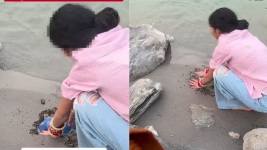 A video showing a woman dumping pooja waste, including a plastic bag, on the banks of the Ganga in Rishikesh has gone viral on social media, sparking widespread outrage. The clip was shared on Instagram by foreigner woman, Sierra Liliann, who said she witnessed the act while sitting by the river. She said that the incident took place at Sai Ghat in Rishikesh.
