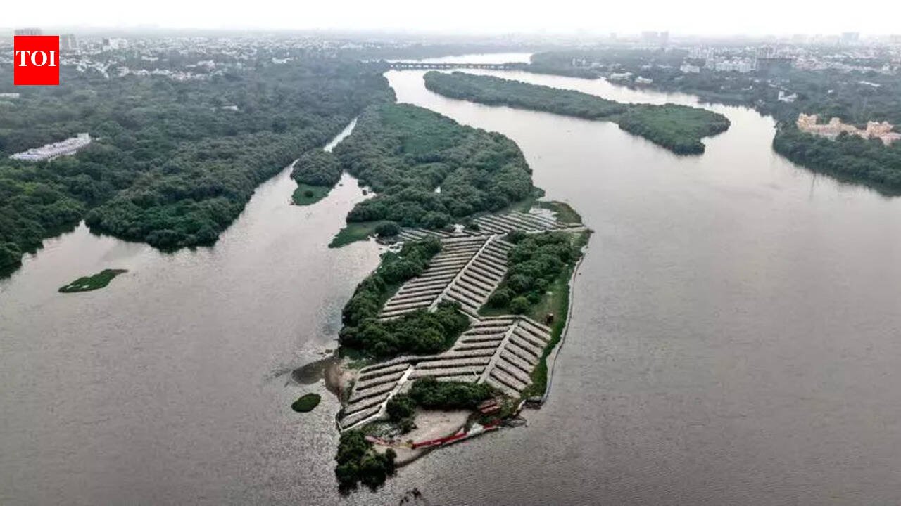 Chennai: Forest officials have planted 20,000 mangrove saplings of five species along the Buckingham Canal near Kazhippattur village on Old Mahabalipuram Road, marking the third phase of a coastal restoration initiative. Environment secretary Supriya Sahu said the project is part of efforts to create a natural coastal bio-shield for the city and enhance climate resilience through large-scale mangrove restoration.The drive has been carried out in phases over the past two years. In the first phase, around 12,500 saplings were planted along the banks of the Buckingham Canal near Kazhippattur. The second phase involved planting 5,000 saplings on the Battle of Adyar Island (Quibble Island) along the Adyar River between the Theosophical Society campus and MRC Nagar. Forest officer V A Saravanan said the latest plantation was carried out adjacent to the earlier site along the canal to expand the restored mangrove habitat. Before the exercise, the forest department created a network of eight fishbone-shaped canals of eight feeder canals supported by 186 distribution canals. These channels are designed to allow saline water to enter during high tide and drain out during low tide, creating suitable conditions for mangrove growth, he said. In the third phase, the department planted 9,696 Avicennia marina saplings, 1,495 Avicennia officinalis, 3,602 Rhizophora mucronata, 726 Rhizophora apiculata and 4,481 Excoecaria agallocha.Officials said mangroves help prevent coastal erosion, act as buffers against floods and storm surges, support biodiversity and improve ecological health of waterways. The saplings were grown at departemnt nurseries at Nanmangalam forest and at the Maritime University on OMR. Officials said it took around nine months for the saplings to grow enough to be transplanted.