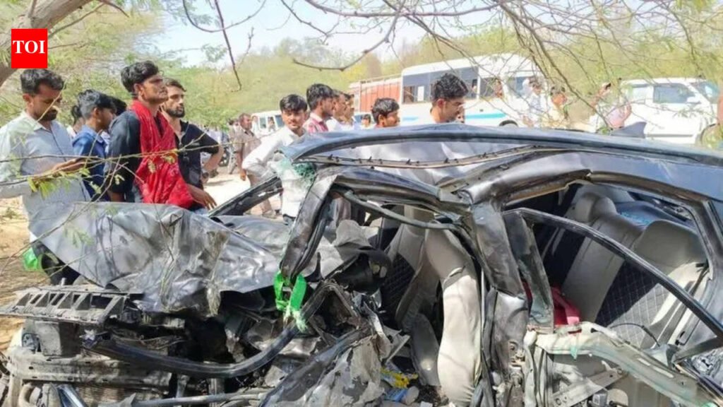 Jaisalmer: Four people, including a couple and their son, were killed in a head-on collision between a car and a pickup vehicle on National Highway-68 near Harsani Phanta in Barmer district Tuesday afternoon.One person travelling in the pickup was injured and is undergoing treatment at the district hospital. The accident occurred when the victims were travelling from Jaisalmer towards Barmer in an i10 car. The victims have been identified as Baburam (39), his wife Baby (34), and their son Vivaan (4), all residents of Jhalamalia village in the Jodhpur district. Virendra (22), a resident of Uttar Pradesh, was also travelling in the car and died in the crash. Eyewitness accounts described the vehicles as “completely mangled” following the violent impact. According to police reports, the collision happened when a speeding pickup truck, which was loaded with sacks of paint, veered into the path of the oncoming car. The force of the crash scattered paint across the roadway, contributing to the chaotic scene that unfolded in the aftermath. Emergency services were promptly notified, and police rushed to the scene, where a large crowd had already gathered. Rescue operations were carried out with the help of locals, who assisted the Gramin Thana police in extracting the bodies trapped inside the wreckage. While four individuals perished in the car, one person from the pickup sustained injuries and was transported to the district hospital for treatment. Police were investigating the cause of the accident as both vehicles were reported to be travelling at significant speeds. Additional District Collector Rajendra Singh Chandawat and Deputy Superintendent Ramesh Kumar Sharma visited the district hospital to gather information. The bodies were placed in the mortuary, and police were working to piece together the circumstances surrounding the crash.