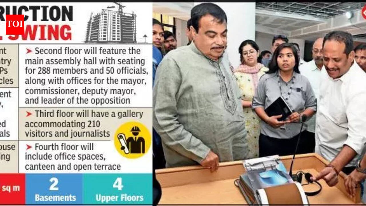 During the inspection, Gadkari emphasised that there should be no compromise on the quality of materials used in the auditorium and other parts of the building. Drawing a comparison with the Central Vista project in New Delhi, he suggested that the new Town Hall should match high standards in terms of infrastructure, interiors, seating, acoustics, air-conditioning systems, and overall aesthetics.The city MP also reviewed the strengthening work of the adjacent heritage structure and instructed officials to ensure that the new building’s beautification complements the architectural character of the old heritage structure. Enhanced microphone systems, improved seating arrangements, and efficient climate control systems were among the key suggestions made by the minister. Spread across 6,808.13 square metres, the new Town Hall complex comprises two basements and four upper floors. The lower basement is designated for entry and parking of VIPs and the mayor’s vehicles, while the second basement will cater to entry, office space, and parking for elected members and officials. The first floor will house a hall with a seating capacity of 155. The second floor will feature the main assembly hall with seating for 288 members and 50 officials, along with offices for the mayor, commissioner, deputy mayor, and leader of the opposition. The third floor will have a gallery accommodating 210 visitors and journalists, while the fourth floor will include office spaces, a canteen, and an open terrace. MLAs Pravin Datke and Krishna Khopde, deputy mayor Leela Hathibed, ruling party leader Narendra (Balya) Borkar, corporators Sudhir Raut and Sachin Naik, senior civic officials, and representatives of the project agencies were present during the inspection.
