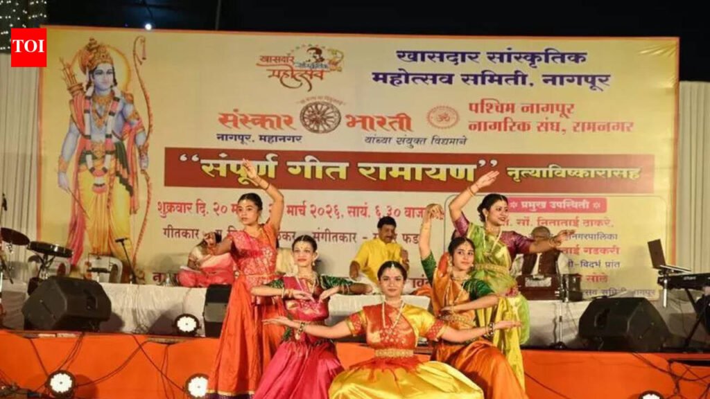 Nagpur: The four-day cultural spectacle ‘Sampurna Geet Ramayan’ concluded on Monday with a deeply devotional ambience, drawing an enthusiastic response from the audience. Organised on the occasion of Shri Ram Janmotsav, the programme brought together music, narration and dance to present the timeless story of Lord Ram.The grand finale witnessed the presence of several dignitaries, including Kanchan Gadkari, president of Sanskar Bharati’s Vidarbha province, celebrity chef Vishnu Manohar and others. Gadkari underlined the deeper purpose of such initiatives, stating that the spirit of Lord Ram must be awakened within every individual. She expressed hope that the ideals of ‘Ram Rajya’ — symbolising justice, harmony and righteousness — would find resonance in society once again.She noted that artistic platforms like ‘Geet Ramayan’ serve as powerful mediums to connect people across generations, fostering cultural awareness and moral values. Emphasising the role of Sanskar Bharati, she said such efforts help take meaningful art forms to every section of society, strengthening the collective cultural fabric.The evening began with rendition of Sanskar Bharati’s anthem, setting a reverent tone for the performances that followed. A series of soulful musical presentations traced key episodes from the Ramayan, with artistes delivering emotionally resonant renditions that captivated the audience. The event was jointly hosted by the Khasdar Sankrutik Mahotsav Samiti (Nagpur), Paschim Nagpur Nagrik Sangha (Ram Nagar) and Sanskar Bharati (Nagpur Mahanagar).Performers including Shyam Deshpande, Ambarish Joglekar, Akanksha Charbhai, Vinod Vakhare, Yash Kher, Anand Fadnavis and Surabhi Kasturiwale brought the narrative alive through expressive singing. Each performance seamlessly blended devotion with artistry, drawing applause and appreciation from the gathering.Adding a visual dimension to the musical journey were the dance-dramas choreographed by Avanti Kate, Pallavi Updev and Vrushali Sathe along with their troupe. The performances complemented the songs, enhancing the storytelling with graceful movements and dramatic expression.The programme was anchored by Abhijeet Borikar, while narration by Shweta Garge ensured continuity throughout the evening. The musical ensemble — featuring Parimal Joshi on synthesiser, Shyam Deshpande on harmonium, Moreshwar Dahasahasra and Atharva Shesh on tabla, and Gajanan Ranade and Soham Ranade on percussion—provided a rich and immersive soundscape.The concluding aarti ceremony marked the culmination of the event on a spiritual note.