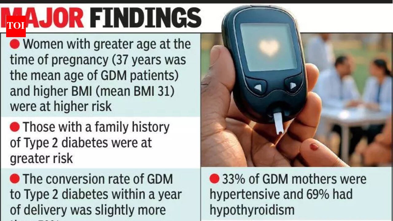 Ahmedabad: Gestational diabetes, a condition in which pregnant women experience a rise in blood sugar levels, has a relatively higher prevalence in India at about 22% compared with a global average of about 15%, according to some reports. The condition, however, is not temporary for many women, as they become prone to developing diabetes mellitus, or Type 2 diabetes.A study based in Ahmedabad city encompassed 247 women with known gestational diabetes, who were tracked for three years continuously from 2023 to 2026 to understand whether the women developed Type 2 diabetes. The results indicated that about 50% of these women still had elevated blood sugar levels three years after childbirth.The study was led by diabetologist Rutul Gokalani and IIPH Gandhinagar associate professor Komal Shah, along with Kashvy Morakhia and Aakansha Shukla. Experts said that gestational diabetes occurs as the placenta produces hormones such as oestrogen, cortisol and lactogen to help the foetus grow, but it also causes insulin resistance that results in a blood sugar spike. Some of the signs include increased thirst, blurred vision, and the need for frequent urination.Dr Gokalani said that about 60% of the women required insulin and metformin for optimal control. “Gestational diabetes (GDM) doesn’t always end with delivery. For many women, it marks the beginning of lifelong metabolic risk. Pregnancy can reveal a hidden diabetes risk: about 50% of women with GDM progressed to Type 2 diabetes during follow-up,” he said.He added that high C-section deliveries among GDM mothers highlight the need for attention to gestational diabetes and obstetric outcomes.Major findings of the study indicated that low-birth-weight babies were more frequent in GDM pregnancies, contrary to common belief. Moreover, most GDM cases occurred in first pregnancies (about 60%), and about one-third of women had a family history of diabetes, suggesting strong genetic susceptibility. Dr Shah said that the results are in line with previously reported findings for gestational diabetes mellitus (GDM) and its progression to post-partum diabetes.“The key emphasis of the present results is on post-partum surveillance of women with a history of GDM. Therefore, early identification of high-risk women during pregnancy and structured post-partum follow-up may help in timely detection and intervention, potentially preventing or delaying the development of Type 2 diabetes,” she said.