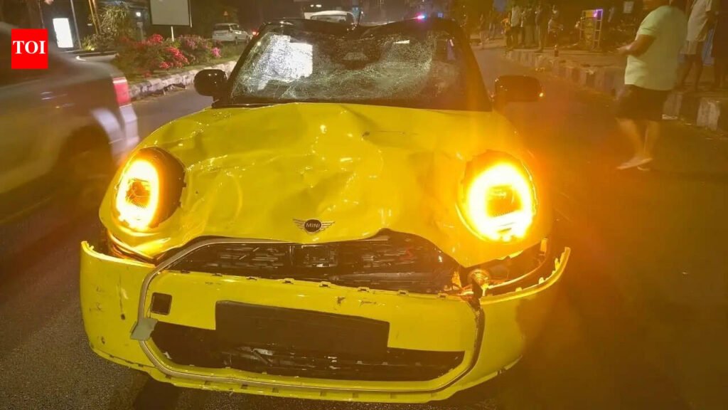 PANAJI: A 23-year-old girl lost her life, and her colleague, a 26-year-old male, was seriously injured at Dona Paula after a two-wheeler on which both were travelling was hit by a brand-new Mini Cooper driven by the son of a businessman.The impact of the accident was so hard that the airbag of the Mini Cooper opened, and the two-wheeler went and stopped over 50 metres from the spot where it was hit. The Mini Cooper was temporarily registered as it was newly purchased.Even the ribbon tied on the door handle was not removed. The bonnet of the Mini Cooper, headlamp, bumper and front glass were completely damaged in the accident.A 22-year-old student and son of Andrew Dias, Darius Myles Dias, was arrested in the accident case, PI Panaji Vijaykumar Chodankar said. Darius was in the car at the time of the accident. The incident took place on the intervening night of Sunday and Monday.Dias, in his brand-new Mini Cooper, which was proceeding from Dona Paula towards Bambolim, hit a two-wheeler from behind when the employee of the Taj Convention Centre crossed the road to proceed towards Bambolim.A 23-year-old Diksha Gopal Parwadkar, a native of Karnataka, was working as an apprentice and a 26-year-old D Arunkumar, resident of Margao. Both were on their way home after work when the tragic accident took place. Both work at the front office of Taj Convention Centre, Chodankar said.After the accident, both were shifted to Hospital for treatment, where Diksha breathed her last, whereas Arunkumar is undergoing treatment at the hospital.An eyewitness said that a speeding car approached the Taj Convention Centre junction from where a two-wheeler was crossing the road, and both the rider and pillion rider were flung into the air and fell on the road.Chodankar said that Panaji police registered the first information report under Section 106 of BNS (causing death by negligence). Chodankar said that the preliminary alcohol test on Darius was negative, but blood samples have been collected and sent for medical tests to find out whether he was under the influence of alcohol. “The blood test result is awaited,” Chodankar said.A local demanded that the govt should put speed breakers at the spot as it becomes a racing track for youth between Dona Paula and Bambolim.