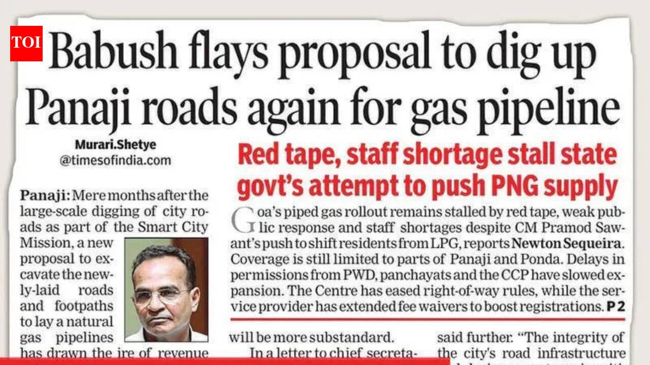 Panaji: State govt has decided to go ahead with laying a natural gas pipeline in Panaji despite Panaji MLA and revenue minister Atanasio ‘Babush’ Monserrate objecting to it.Chief secretary V Candavelou said that laying natural gas pipelines is a central govt priority and discussions are on. “The pipeline will be laid in selected areas by minimising damage to the infrastructure,” he said.Earlier this week, Panaji mayor Rohit Monserrate had said that the Corporation of the City of Panaji would not give any permission to lay gas pipelines in the city.Govt has urged residents to shift from LPG to piped gas following cooking gas shortages triggered by the West Asia conflict. The adoption of piped natural gas (PNG) in Goa has been undermined by the service being limited to urban pockets of Panaji and Ponda, with Porvorim, Calangute and Mapusa still remaining uncovered.Goa Natural Gas Pvt Ltd, a joint venture of GAIL and BPCL, was set up in 2017 to cater to the need of supply of clean energy.They are authorised for laying, building and operating of city gas distribution network in North Goa and Ponda taluka by Petroleum and Natural Gas Regulatory Board under the ministry of petroleum and natural gas (MoPNG).Mere months after the large-scale digging of city roads as part of the Smart City Mission, a new proposal to excavate the newly-laid roads and footpaths to lay natural gas pipelines has drawn the ire of Monserrate.Fresh digging will inevitably disturb the existing drainage gradients, weaken structural stability and generate excessive dust pollution, severely impacting public health, the minister had said. In a letter to chief secretary, Monserrate said that he should fix accountability as he was a chairman of the Smart City Mission and during that time the work could have been taken up.The mayor had also expressed similar views. “We are not in favour of the GNGPL breaking our newly tarred or concrete roads. It took us a lot of time and effort to get those things put into place. We will sit with them and see. We are not going to allow anything before monsoon. The priority of our citizens is paramount. If our people are going to feel any discomfort, then we are not going to allow it. They can extend their timeline by a little bit,” the mayor had said.