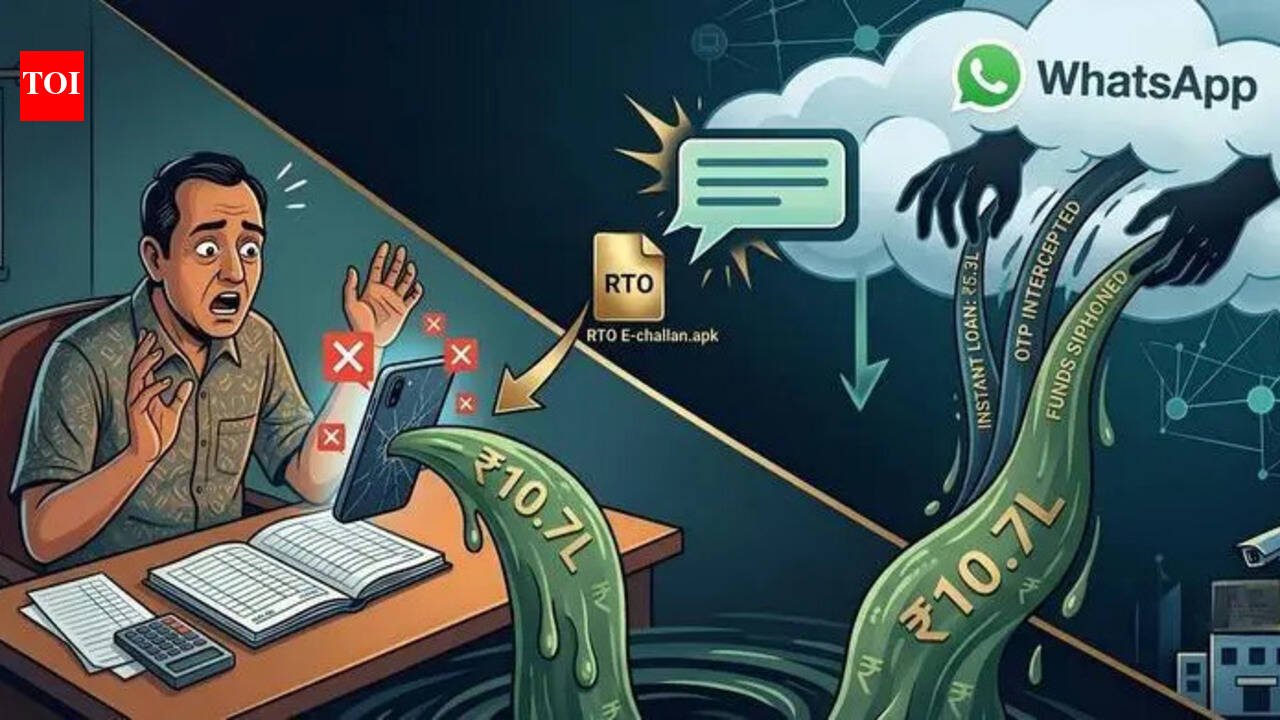 Ahmedabad: When a 50-year-old accountant from Nikol received a WhatsApp message from his employer containing ‘RTO E-challan.apk’ file, he thought it was an official message regarding a traffic memo and installed the file. The moment he entered his name and mobile number, he received a message about money being debited from his account. He immediately deleted the app, but it was already too late. Within 24 hours, he lost Rs 10.7 lakh to cybercriminals. The victim told Cybercrime police that he frequently operated his bank accounts through mobile banking apps. The complainant, who works with a private firm in Vatva GIDC, said, “The fraud began on Feb 19 when I received the message from my employer. I deleted the app the second I realised it was a malicious app. However, the following day, I received multiple banking alerts. I contacted my bank and found that the cyberfraudsters had gained unauthorised access to my mobile phone and banking credentials.“Police said, “Clicking on malicious APK files gives cybercriminals the remote access to victims’ devices, enabling them to steal banking credentials and intercept OTPs.”In this case, cybercriminals allegedly used the compromised access to take an instant loan of Rs 5.3 lakh and an additional instant loan of Rs 4.5 lakh in the victim’s name. The amount, along with existing funds, was then siphoned off in multiple transactions — Rs 5 lakh, Rs 2.6 lakh, Rs 2.5 lakh and Rs 60,000 from a joint account held with his mother — totalling Rs 10.7 lakh.The complainant immediately contacted the cybercrime helpline and later approached the bank to obtain statements confirming the fraudulent transactions. The Cybercrime police registered a case on Monday against unknown persons under relevant sections of cheating and forgery under the Bharatiya Nyaya Sanhita and provisions of the IT Act.