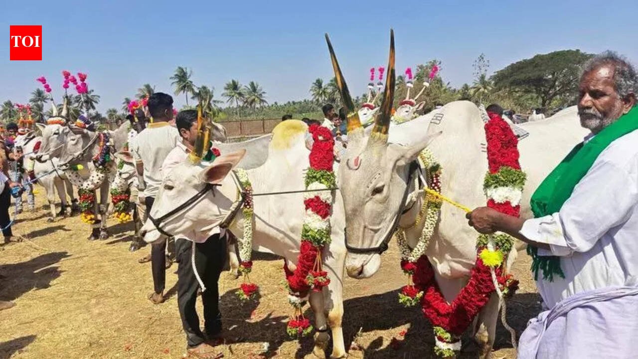 Hampi (Vijayanagara): Among the 180 pairs that participated in the bullock pair competition organised as part of the Hampi Utsav on Friday, pairs of the Hallikar breed secured the first prize.The Hallikar breed bullock pair of Manjunath R from Hosapete won the champion prize of Rs 10,000, along with a certificate. The bullock pairs of B Basava of Gadinaganur village, Shankarappa from Balapur village, and Mahmud Hussain of Hosapete secured the second, third, and fourth positions, respectively.District minister BZ Zameer Ahmed Khan personally supported the award-winning farmers by presenting a cash prize of Rs 2 lakh.Deputy commissioner Kavita S Mannikeri inaugurated the horticulture, fruit and flower, agriculture, forestry, fisheries, and trade stalls organised at the Matanga Parvat ground. Floral recreations of the iconic Badavi Linga and Sasivekalu Ganesha statues emerged as the centre of attraction.An idol of Sri Krishna crafted entirely from flowers, and the Salumarada Thimmakka idol made of millets, also received significant public response. The ornamental fish display drew a large crowd, adding to the festive atmosphere at the venue. The image ‘Save the Female Foetus’ highlighted social awareness at the rangoli competition held outside the Sri Virupaksha Temple, with 41 female contestants taking part.The rangoli designs featuring the Varaha emblem of the historic Vijayanagara Empire, Sri Krishna Devaraya, Shiva Linga, lion, and others captivated the audience.