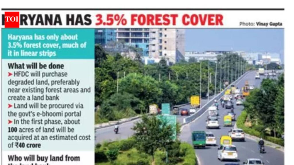 Gurgaon: Haryana is planning to create a forest land bank to compensate for the loss of green cover in the state. Amid diversion of narrow forest strips — along highways, canals and railway lines — increasing for infrastructure and commercial projects, a proposal prepared by Haryana Forest Development Corporation (HFDC) suggests the creation of the land bank for smaller projects involving diversion of forest land for non-forestry purposes under the Van (Sanrakshan Evam Samvardhan) Adhiniyam, 1980. Once the land bank is created, project proponents seeking diversion of small patches of forest land — including access for petrol pumps, warehouses, industries or real estate projects — will be required to purchase land from HFDC. The land is proposed to be procured through the govt’s e-bhoomi portal, officials said. A committee, headed by the managing director of HFDC, has been proposed to oversee the purchase.In the first phase, the corporation plans to acquire around 100 acres (about 40 hectares) of land, with an estimated cost of Rs 40 crore. The land bank would primarily be used to compensate diversion proposals involving less than one hectare of forest land. Haryana currently has around 3.5% forest cover, among the lowest in the country. A large part of this forest area exists as strip forests along roads, national highways, canals, bunds and railway lines, which often form the primary tree cover in several districts.“The forest area of strips, especially along roads, is being diverted either by widening of roads or by seeking access through the forest lands for non-forestry purposes such as petrol pumps, warehouses, industries and development projects,” the proposal notes.Data shared by the Union environment ministry shows that more than 1,150 hectares of forest land in Haryana were diverted for over 1,280 projects between April 2021 and Oct 2025, indicating steady pressure on the state’s already limited forest cover. The issue was discussed at a meeting on March 9, where officials decided on the proposal of the forest land bank model on the lines of Punjab to deal with diversion of small parcels of forest land.Under the Van (Sanrakshan Evam Samvardhan) Adhiniyam, 1980, diversion of forest land for non-forest purposes generally requires prior approval of the central govt. The amended law, however, provides a limited exemption for diversion of forest land up to 0.10 hectare located alongside railway lines or public roads, if it is used to provide access to habitations or basic roadside or rail amenities.“While the exemption applies to very small parcels, states like Haryana, where a large share of the remaining tree cover exists as roadside and canal strip forests, could see cumulative impacts over time,” a forest official said.To address the issue, HFDC proposed creating the land bank by purchasing degraded land, preferably located near or contiguous to existing forest areas. The committee will also include the APCCF (forest conservation)-cum-nodal officer under the forest conservation law, the conservator of forests, south circle, Gurgaon, as member secretary, and a representative from the land revenue department.Officials say the mechanism is aimed at ensuring that multiple small diversions do not lead to a permanent reduction in Haryana’s already limited forest cover, even as infrastructure expansion continues across districts such as Gurgaon and Faridabad.“Strip forests may look insignificant individually, but together they form the backbone of Haryana’s green cover and act as critical buffers along roads and canals,” environmentalist Vivek Kamboj said, adding, “The FCA exemption for small parcels has unintentionally encouraged piecemeal diversion and over time this led to a visible thinning of green cover. A land bank can help compensate for losses, but it should not become a substitute for protecting existing forests.“