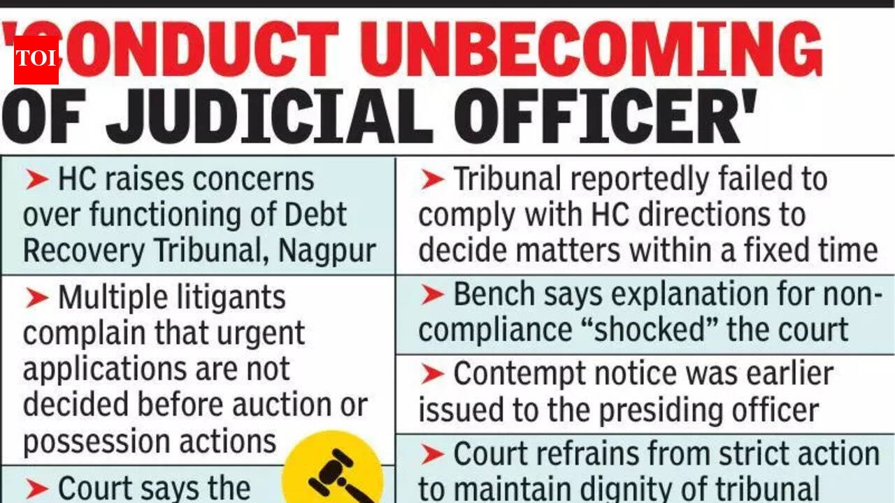 Nagpur: The Nagpur Bench of Bombay high court expressed serious concern over the functioning of the Debt Recovery Tribunal, observing that repeated complaints about the conduct of its presiding officer have surfaced in several cases over the past few months.A division bench comprising Justices Anil Kilor and Raj Wakode made the observations while hearing a batch of petitions that raised grievances about delays in adjudication before the tribunal, particularly in matters involving urgent relief.According to the court, several petitions placed before it highlighted a common concern that applications and proceedings pending before the tribunal, including urgent pleas seeking a stay on auction proceedings or possession actions, were not decided before coercive steps were initiated against borrowers.The judges noted that such allegations, if accurate, reflected conduct that appeared “unbecoming of a judicial officer” and required immediate attention. The bench also recorded its concern over the tribunal’s failure to comply with earlier directions issued by the high court to decide certain proceedings within a stipulated time frame.During the hearing, the court examined the explanation offered by the tribunal’s presiding officer for the delay in complying with the high court’s order. According to the bench, the explanation “shocked” the court.The officer stated that because writ petitions relating to the matter were pending before the high court, the tribunal did not comply with the directions requiring disposal of the proceedings within the prescribed period.The judges observed that such reasoning could not justify non-compliance with a judicial order. The bench further noted that a contempt notice was earlier issued to the presiding officer. However, it recorded that the court was still attempting to avoid taking stringent action “to maintain the dignity of the tribunal.”During the proceedings, the court requested Kartik Shukul, Deputy Solicitor General of India (DSGI), to communicate the court’s concerns to the appropriate authorities in the Union govt.Shukul informed the bench that he wrote a detailed letter dated March 2, 2026, to the joint secretary of the department of financial services in the central govt, highlighting the issue and the concerns raised by the high court.Taking note of the submission, the bench directed the DSGI to place the correspondence on record by the next hearing.The matter arises from a batch of petitions, including one filed by Gajanan Burghate and another against the Debt Recovery Tribunal through its presiding officer. The proceedings also include connected writ petitions filed by Arvind Chikar and Rajan Bokde.The petitioners raised grievances over delays in the tribunal’s proceedings, including the pendency of an interlocutory application seeking production of original loan and mortgage documents. According to the petitioners, their applications remained pending for several months without a decision.The high court posted the matter for further hearing and is expected to examine the issue after the Union govt places the relevant communication on record.
