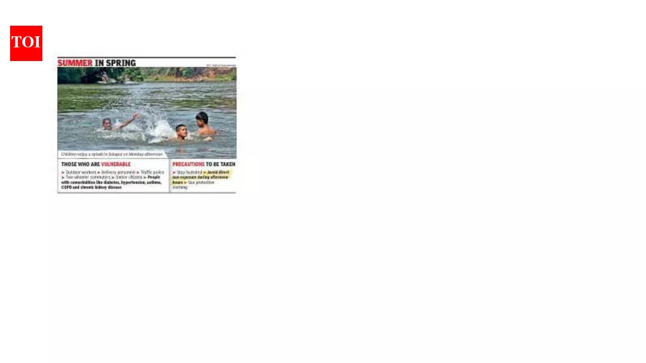 Pune: With maximum temperatures surging to 37–39°C in parts of the city in the first half of March, doctors have started witnessing cases of heat exhaustion and other such related illnesses earlier than usual this year, particularly among people who spend long hours outdoors. On Monday, day temperatures in the city rose to another seasonal high — 39 degrees Celsius in Lohegaon and 37.7 degrees Celsius in Shivajinagar.Dr Hillary Rodrigues, a family physician, said he treated a heat stroke patient on Monday, indicating that the impact of rising temperatures is being seen weeks before the usual peak summer period. “One patient came with very high fever of around 103°F, severe headache and low blood pressure with no other complaints. He works as a delivery personnel and was out in the sun most of the time, so this was a case of suspected heat stroke due to prolonged exposure. We are also seeing many patients with severe headache, high fever, dehydration and solar dermatitis, where rashes appear on exposed parts like the neck and arms. Headache, warm body and dehydration are common signs of heat exhaustion,” he said. Physicians said such cases are usually seen later in the season, but this year they have started appearing weeks earlier. Dr Aditya Bari, physician and diabetologist at Bari Specialty Clinic, said he has been seeing heat exhaustion patients almost every day for the past few weeks. “Heat exhaustion is a mild form of heat-related illness seen in people who travel a lot on two-wheelers or stay outdoors without adequate protection. They develop fatigue, weakness, body ache and feel exhausted very quickly because of dehydration and heat loss through sweating,” he said. He said the timing of the cases is unusual. “Normally, we start seeing such patients after mid-April or towards the end of April and May. But this time, we are seeing them in the first half of March itselfl,” Bari said. Doctors added that along with exhaustion, dehydration and stomach infections are also rising as people consume beverages from roadside stalls to cope with the heat. “There is an increase in dehydration as well as gastroenteritis cases. In hot weather, juices and drinks kept outside spoil quickly, and unhygienic storage can lead to food infections,” Bari said. Data from the state health department showed no heat stroke cases reported till March 8. Doctors, however, said patients with heat exhaustion and suspected heat stroke have already started visiting clinics, and recent cases may get added to the state records after routine reporting updates. Dr Prasad Biware, head of the department and consultant in internal medicine at Manipal Hospital, Baner, said heat-related illnesses are usually uncommon this early in the season. “Heat stroke cases are usually uncommon in Feb and even in March we see very few. This year, some patients have come not with typical heat stroke symptoms but with dehydration, loose motions and vomiting,” he said. Doctors said the change in season from winter to summer is also leading to a rise in infections. Dr Aniket Joshi, physician and intensivist at Lopmudra Hospital, said respiratory infections have increased in recent weeks with the seasonal transition. “With the change of season, we are seeing more viral infections, and some of these are leading to pneumonia. Bronchitis is common every year, but we are also seeing pneumonia cases, which is slightly unusual,” he said. “We saw one patient with heat exhaustion after he had to walk in the afternoon between 12 and 1pm. His blood pressure had dropped due to dehydration, which can lead to hypovolemic shock. This is not heat stroke but exhaustion due to heat and fluid loss. Due to the sudden rise in afternoon temperature, people are getting dehydrated ,” Joshi said.