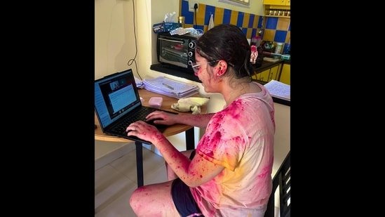 Taking to X, user Heer (@18RawatG) shared a photo of herself sitting at her laptop for a work call while still covered in Holi colours. “In today’s episode of @peakbengaluru. Played Holi till 10:59 am. On a ‘quick call’ at 11:00 am,” she wrote.