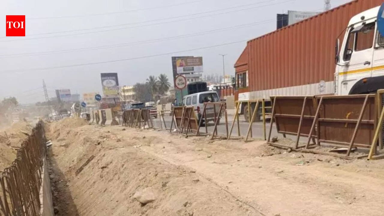 Bengaluru: The National Highways Authority of India (NHAI) has decided to construct three-lane service roads along Hosur Road (NH-44) to ease congestion caused by ongoing grade-separator work at four key junctions. The move aims to ensure traffic keeps moving smoothly while major civil works are executed on the busy corridor that carries over 1.2 lakh passenger car units daily.Construction activity is under way at Guestline Circle, Guddahatti Gate, and Chandapura, while it is yet to start in Veerasandra. Six-lane underpasses for the main carriageway are planned to eliminate accident-prone black spots and improve long-term traffic flow. With excavation on the main carriageway expected to significantly disrupt movement, NHAI will divert vehicles onto widened three-lane service roads on both sides of the highway until underpass works are completed. Nearly 7km of such service roads will be developed by expanding the existing two-lane stretches. “Hosur Road is one of the busiest corridors and a significant portion comprises heavy trucks and trailers. Executing underpass works on the main carriageway will affect traffic flow. Hence, traffic must be diverted to upgraded three-lane service roads until completion. Existing two-lane service roads will be widened. The proposal was sent to NHAI headquarters and work will begin shortly,” an official said.The decision gained urgency after a Feb 5 cave-in of nearly 100 metres near Chandapura during excavation work, which paralysed traffic on the corridor. Since then, geotechnical experts have been deployed to supervise excavation, and retaining walls are being built to prevent soil collapse.Veerasandra culvert work Following severe waterlogging during last monsoon near White Feather Factory at Veerasandra junction, which led to traffic chaos and safety concerns, NHAI proposed building a box culvert to prevent flooding. Officials said nearly 90% of the precast box culvert work is completed, and preliminary works are under way. NHAI is awaiting traffic-diversion clearance from police to finish the remaining works before the onset of monsoon.
