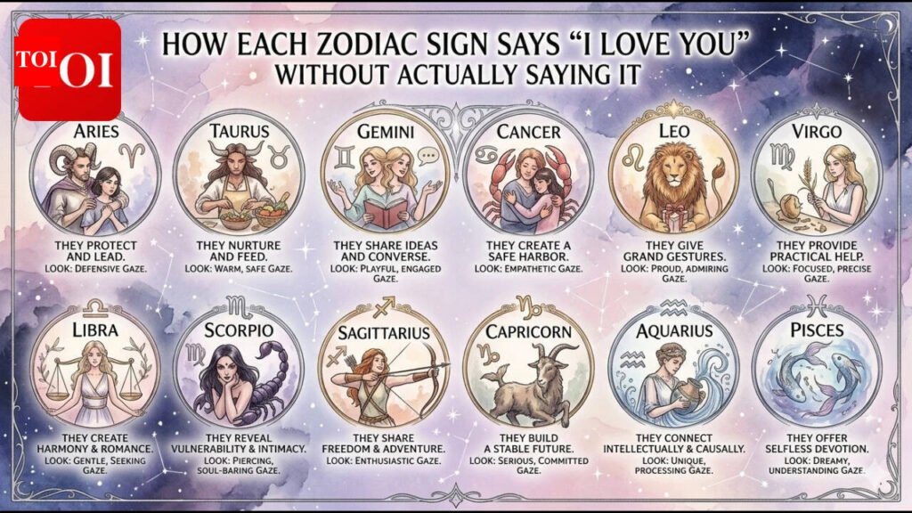 At times, love is more than just words. Sometimes it appears in small gestures, thoughtful actions, or quiet moments of care. From protective acts to thoughtful surprises, here’s how each sign tends to show their feelings.AriesWhen it comes to love, Aries believes in bold actions. If they include you in their adventure-filled, spontaneous plan, it’s true, they are crazy about you.TaurusTaurus takes you into their tiny comfort zone if they truly love you. They would cook your favorite meal for you, remember even the little details about you, or do anything to keep you comfortable; that’s love for them.GeminiFor Gemini, constant communication is the love language. Constant texting, random calls just to update you on something, and those long conversations when they miss you—that’s their way of showing affection.CancerCancerians show love by protecting you. They might check on you often, cook for you, or make sure you feel safe and comfortable.LeoWhen a Leo is in love, they just proudly show you off. They may introduce you to everyone important in their life, celebrate your achievements loudly, and shower you with compliments.VirgoVirgo believes in being practical in love. They may solve your problems, give thoughtful advice, or handle small tasks to make your day easier. Their quiet acts of service often carry deep affection. LibraLibra’s love language is truly romantic. They might plan special dates, surprise you with meaningful gifts, or simply make sure you always feel appreciated and valued.ScorpioThey are loud when it comes to love. They would move mountains to protect you and pick fights with anyone who offends you. Sorry, that is their love language.SagittariusThey push you out of your comfort zone. They take you along with them to explore the world and help you gain real-life experiences.CapricornCapricorns express their love through effort. They may help you plan your future, support your ambitions, or quietly work to build a stable life together.AquariusFor Aquarius, love often appears in an intellectual connection. They may share their unique ideas, include you in meaningful discussions, or treat you like their closest friend.Pisces They are the ever-romantic, dreamy ones. To express their love, they would give you a handwritten note, gift you a self-knitted sweater, or even learn to cook your favorite meal, even when they are terrible cooks.