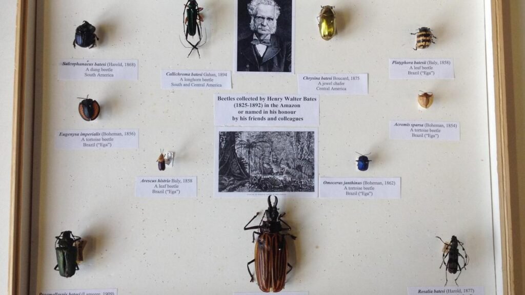 A small display of Henry Walter Bates’ beetles.