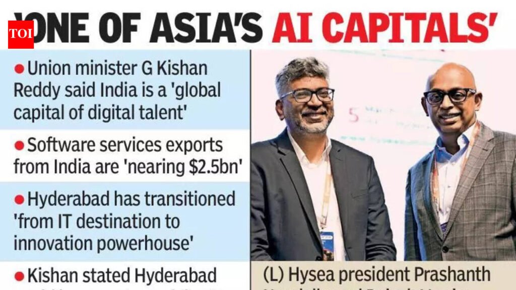 Hyderabad: Coal and Mines minister G Kishan Reddy said India is now a “global capital of digital talent”, with software services exports “nearing $2.5 billion”, and Hyderabad moved “from IT destination to innovation powerhouse”.“Hyderabad is not just coding for the world, it is shaping the future of the world,” he said, pointing out that Hyderabad can become “one of the AI capitals of Asia”, while speaking at the annual summit and awards conducted by the Hyderabad Software Enterprises Association (HYSEA).Minister G Kishan Reddy urged industry to invest in R&D, mentor start-ups, partner with universities, and expand innovation to tier-2 and tier-3 cities.He also pointed to the surge in digital payments, saying, “UPI processes nearly 18 billion transactions every month”, accounting for “almost 50% of world real-time digital payments”.Reddy said the next decade will be driven by “artificial intelligence, quantum computing, cybersecurity, blockchain governance, semiconductor design and green data centres”, and stressed the need for AI to be “ethical, secure, inclusive”. Citing PM Modi’s vision, he called for a “sovereign AI ecosystem” and “Atmanirbhar across the AI value chain”. As part of the day-long event, HYSEA also presented its lifetime achievement award to serial entrepreneur and investor Srinivasa Raju Chintalapati (Srini Raju), Chairman, iLABS Group, for his contribution to entrepreneurship, venture investment, and development of India’s innovation ecosystem. Industry awards were given in recognition of excellence in exports, growth, employment generation, and women workforce advancement.On the occasion, HYSEA also unveiled a coffee table book, “Making IT Happen”, developed with The Times of India, chronicling Hyderabad’s IT journey. It also released the refreshed 2nd edition of the Scale@Hyderabad Global Technology Destination Report with the govt of Telangana, KPMG in India, CBRE and Aon, alongside a PwC knowledge report on how IT and GCC organisations in Telangana are advancing AI capabilities.Speakers included Gartner’s Ganesh Ramamoorthy, Cognizant India President–Global Operations and CMD Rajesh Varrier, Bharat Biotech founder Dr Krishna Ella, PwC India Emerging Tech Partner Rajesh Dhuddu, Ananth Technologies founder Dr Subba Rao Pavuluri, Forrester’s Ashutosh Sharma, Avasant’s Akshay Khanna, and Sailaja Josyula.