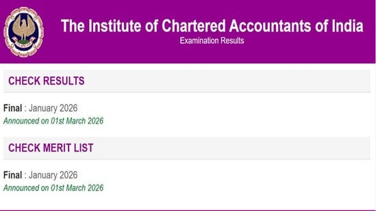Share Facebook Twitter Pinterest Email Copy Link ICAI CA January Result 2026 for final course has been released. The scorecards and merit list can be checked here. Source link