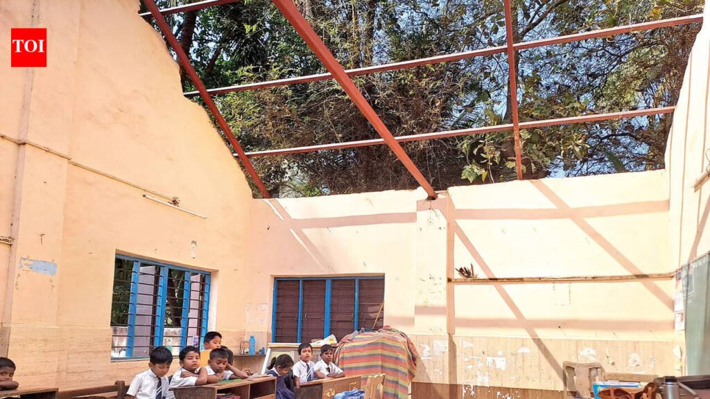 Colva: Students of Govt Primary School, Colva, have been attending classes under the open sky for weeks, braving early-morning dew and the harsh sun after the public works department (PWD) dismantled the school’s roof in Jan and has failed to refit it so far.The two-room primary school near Dando ground, which caters to 14 students from Classes I to IV, and 15 more children awaiting admission in the coming academic year, has been functioning without a roof since the Christmas vacation ended and classes resumed. The building also doubles up as a polling booth during elections.With no shelter overhead, lessons are being conducted in classrooms fully exposed to the elements, raising serious concerns about the safety and well-being of the students.Headmistress Rupali Dessai said she has made repeated calls to the PWD and the contractor appointed to replace the roof, only to be told that the required material had not yet arrived from a factory outside the state.PWD executive engineer Vincent D’souza stated that he has been recently transferred to division VIII, which oversees govt buildings, and therefore does not have complete details of the pending work.However, he said that the contract was awarded to a Pune-based firm to replace tiled roofs with sheets at two government primary schools — Colva and Cavelossim. The Pune contractor, in turn, subcontracted the work.Following the removal of the original tiled roof, fabrication work was carried out to install the sheets. Alarmingly, holes were drilled into the classroom walls and metal members were welded while students were present inside the classrooms.After the issue was taken up by Colva-Sernabatim panch member Pio Furtado, sheets were finally delivered to the site on Feb 6. Two labourers were later seen applying anti-rust coating to the metal framework. However, the workers were reportedly not using safety harnesses or protective equipment, further endangering the lives of students and teachers.Asked why classes were not suspended until the roofing work was completed, Dessai said holidays could not be declared, though school hours have been curtailed, with classes now held from 7.45am to noon.D’souza promised that efforts would be made to complete the work within a fortnight.A similar situation prevails at the Govt Primary School, Cavelossim, where the entire roof has been removed and fabrication work completed. Sheets are already piled at the site, appearing to have been stored there for some time. The key difference, however, is that the school currently has no students and is used solely as a polling booth.Cavelossim sarpanch Dixon Vaz said a proposal has been submitted to the government to utilise the premises for self-help groups from the village.