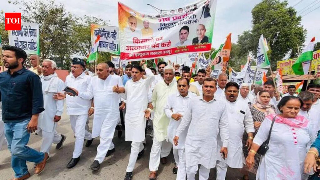 Gohana (Sonipat): The Congress on Friday staged a protest in Gohana against the state govt’s newly introduced wheat procurement regulations, alleging that the measures are “arbitrary, impractical and anti-farmer”.Led by former minister Jagbir Malik and Baroda MLA Induraj Narwal, hundreds of farmers and residents marched from the irrigation department rest house to the mini secretariat, raising slogans and voicing strong opposition to the new rules.The protesters accused the govt of imposing policies without considering ground realities, claiming that the new system has made it increasingly difficult for farmers and commission agents to sell produce in mandis.A memorandum addressed to Haryana chief minister Nayab Singh Saini was submitted through the sub-divisional magistrate (SDM), demanding immediate rollback of the new procurement norms.Tensions escalated at the mini secretariat when the SDM was initially unavailable. MLA Induraj Narwal, along with farmers, staged a sit-in protest, forcing officials to respond. Nearly an hour later, the SDM arrived to formally accept the memorandum.Congress leaders claimed that mounting pressure from the protest compelled the govt to respond, with authorities now assuring 24-hour procurement of crops. However, they said this was only a partial victory and warned that the agitation would intensify unless all “anti-farmer” provisions were withdrawn.The controversy centres around recently introduced mandi regulations, including mandatory biometric verification, registration on the ‘Meri Fasal Mera Byora’ portal, compulsory number plates on tractor-trolleys, and strict time-bound procurement conditions.According to the protesters, these requirements disproportionately affect small and marginal farmers. Those relying on rented machinery or whose land is registered in women’s names face additional hurdles in accessing procurement centres.Leaders also flagged serious concerns over incomplete rabi crop registration. A large number of farmers are reportedly unable to sell wheat due to a lack of registration on the portal. The Congress demanded that the portal be reopened immediately to ensure wider access.Calling for urgent reforms, the party urged the govt to simplify procedures, ensure transparency, and adopt a more farmer-friendly approach.Warning of wider unrest, Congress leaders said failure to address these issues promptly could trigger large-scale agitation, holding the govt accountable for any escalation. They reiterated that the party would continue its struggle until all “anti-farmer” rules were scrapped.MSID:: 130000857 413 |