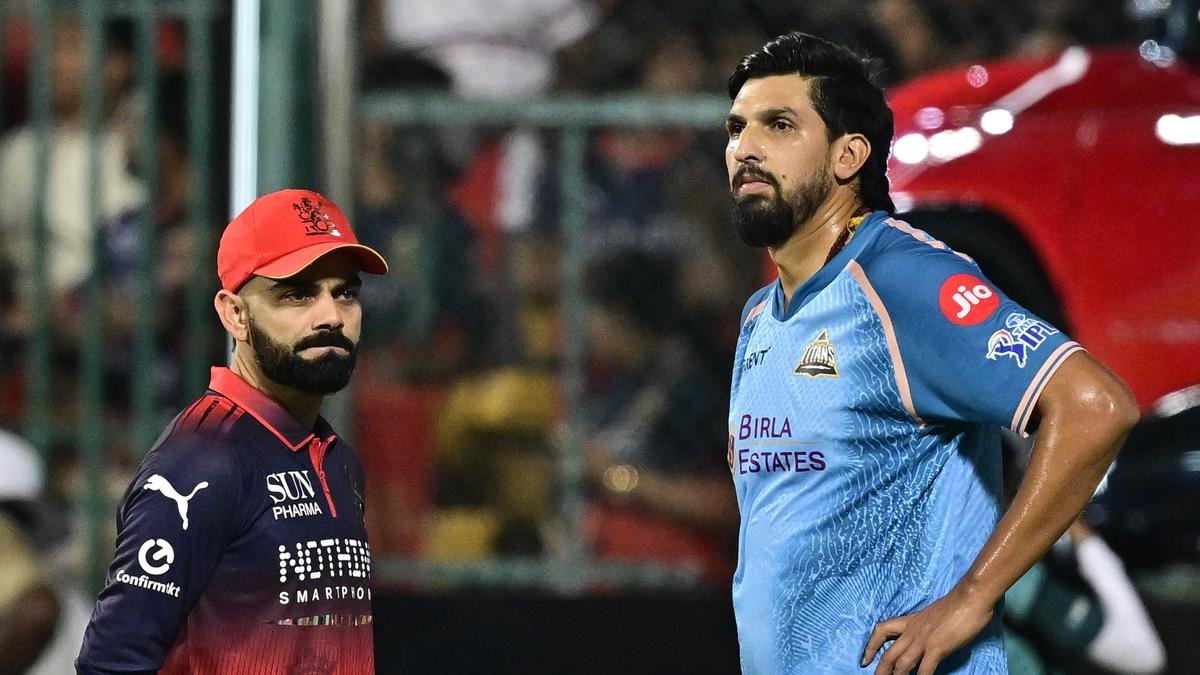 Virat Kohli speaking to Ishant Sharma ahead of the IPL match between Royal Challengers Bengaluru (RCB) and Gujarat Titans (GT), at M. Chinnaswamy Stadium (KSCA), in Bengaluru on April 24, 2026.
