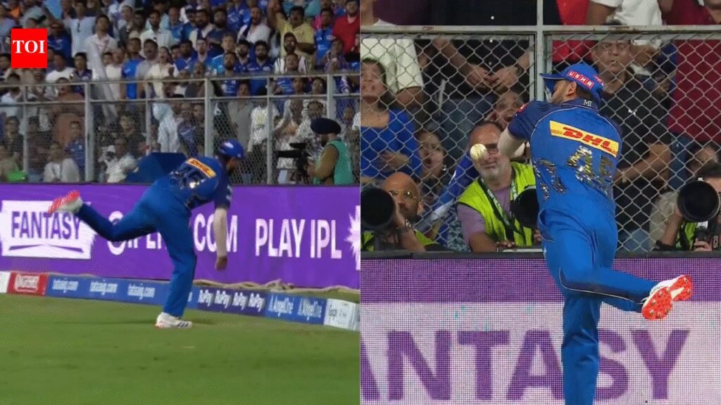 Rohit Sharma endured a rare lapse in the field during Indian Premier League 2026 clash between Mumbai Indians and Kolkata Knight Riders at the Wankhede Stadium. The moment came in the 14.5 over when AM Ghazanfar delivered a tossed-up ball on middle and leg to Angkrish Raghuvanshi. Looking to accelerate, Raghuvanshi went aerial, lofting the ball towards long-on. Rohit, stationed in the deep, got into position but failed to hold on as the ball slipped out of his hands and landed just inside the boundary ropes, resulting in a four. It was a costly miss for Mumbai Indians, especially given Raghuvanshi’s form on the night. The youngster made the most of the reprieve, continuing his impressive innings and playing a key role in KKR’s dominant total. Rohit, visibly frustrated, was seen reacting in disappointment after the dropped chance. The incident summed up MI’s struggles in the field as KKR piled on the runs. Earlier, Ajinkya Rahane and Finn Allen had laid a strong foundation with a rapid opening stand, while Raghuvanshi’s 29-ball 51 kept the momentum firmly with Kolkata. Rahane led from the front with a fluent 67 off 40 balls, and Rinku Singh provided the finishing touches with an unbeaten 33, as KKR posted a commanding 220 for 4. Despite Shardul Thakur picking up three wickets and Jasprit Bumrah maintaining control at the death, MI were left to rue missed opportunities in the field — with Rohit’s dropped catch proving to be one of the defining moments of the innings.