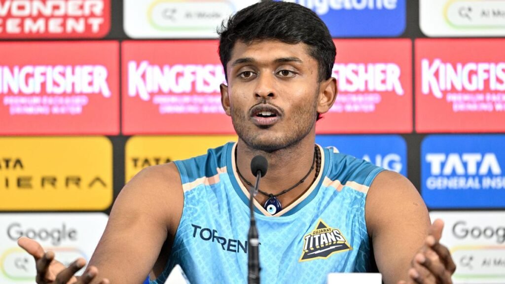 Gujarat Titans player Sai Sudharsan addresses a press conference ahead of their match at Arun Jaitley Stadium in New Delhi on April 7, 2026.