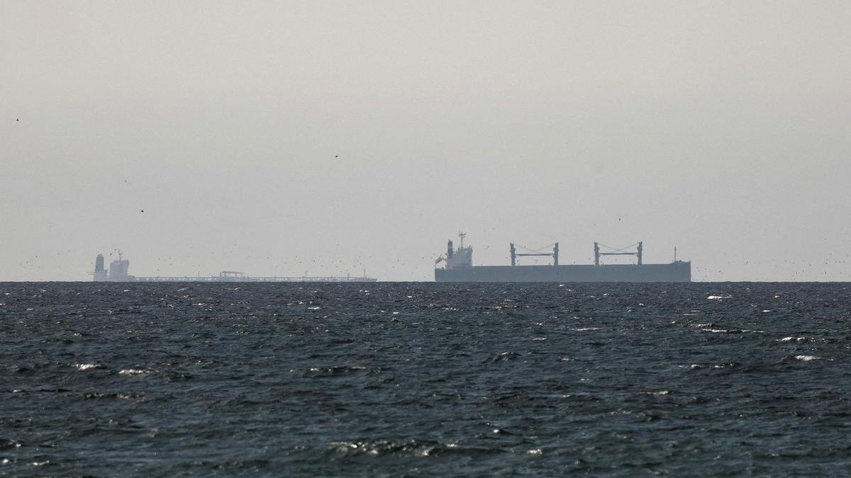 A cargo ship in the Gulf, near the Strait of Hormuz, as seen from northern Ras al-Khaimah, near the border with Oman’s Musandam governance, amid the U.S.-Israeli conflict with Iran, in United Arab Emirates, March 11, 2026.