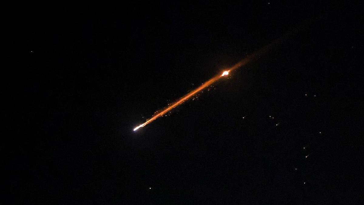 An Iranian missile with cluster munitions flies over Jerusalem amid the U.S.-Israeli conflict with Iran on March 20, 2026.