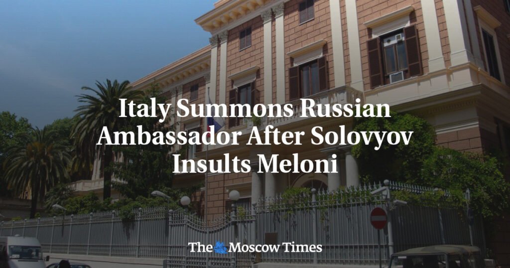 Italy summoned Russia’s ambassador in Rome after Russian state TV Vladimir Solovyov issued a stream of insults against Prime Minister Giorgia Meloni, Italian Foreign Minister Antonio Tajani said Tuesday.
