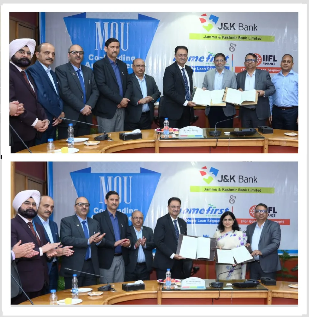 Jammu, Mar 07: To expand retail lending footprint especially outside the UT and enhance credit access, J&K Bank formally launched its co-lending arrangements with the country’s leading NBFCs – Home First Finance Company India Limited (HFFC) for the home loan segment and IIFL Finance for the gold loan segment.