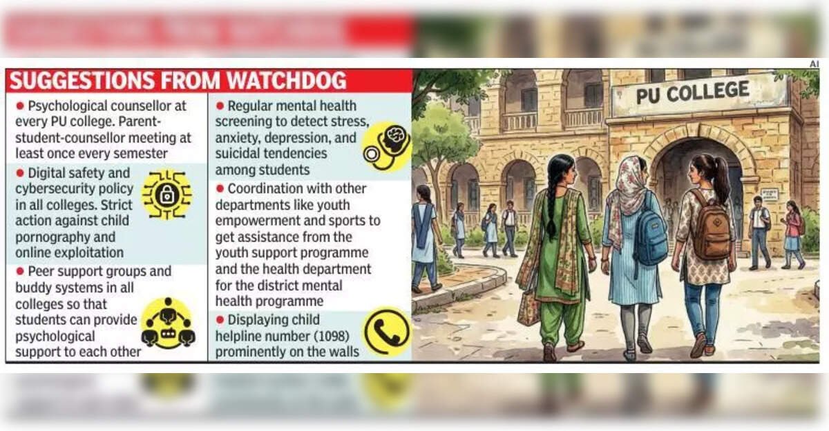 The recommendations call for appointing psychological counsellors in every PU college, conducting annual programmes on adolescent health, safety, and legal awareness, and implementing a digital safety policy while taking strict action against online exploitation under the IT Act. They also stress student visits to the nearest police station, peer support systems, mental health screenings, mandatory life-skills education, and a confidential grievance redressal mechanism for students.