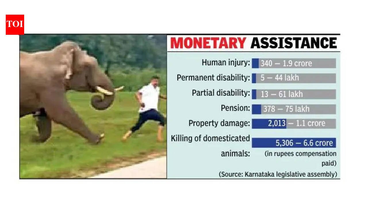 Mysuru: Wildlife attacks claimed 53 lives and injured more than 350 people in the state between April 2025 and Feb 2026, assembly data shows.Over the 11-month period in 2025-26, at least 340 people suffered injuries. Thirteen were left partially disabled, and five were permanently disabled. The surge has sparked fear across villages and forest-fringe areas, where residents depend on farming, grazing, and daily-wage work. Many were attacked while collecting firewood, working in fields or walking along forest paths.One such victim is Mahadeva Gowda of Badagalapura village, who lost his eyesight in a tiger attack in mid-Oct 2025. He was working in a cotton field when the animal charged at him, leaving him permanently disabled. He is now confined to his home and relies on his wife and children to move around.Replying to a query by MLA Harish Poonja in the assembly, forest minister Eshwara B Khandre said 340 people were injured, 13 partially disabled and five permanently disabled between April 2025 and Feb 2026. He said compensation is being paid to the injured, and financial assistance is provided to families of those killed.According to the data, families of the deceased receive an ex gratia of Rs 20 lakh, followed by a Rs 4,000 monthly pension for five years. Compensation includes about Rs 10 lakh for permanent disability, Rs 5 lakh for partial disability, and up to Rs 60,000 for injuries.