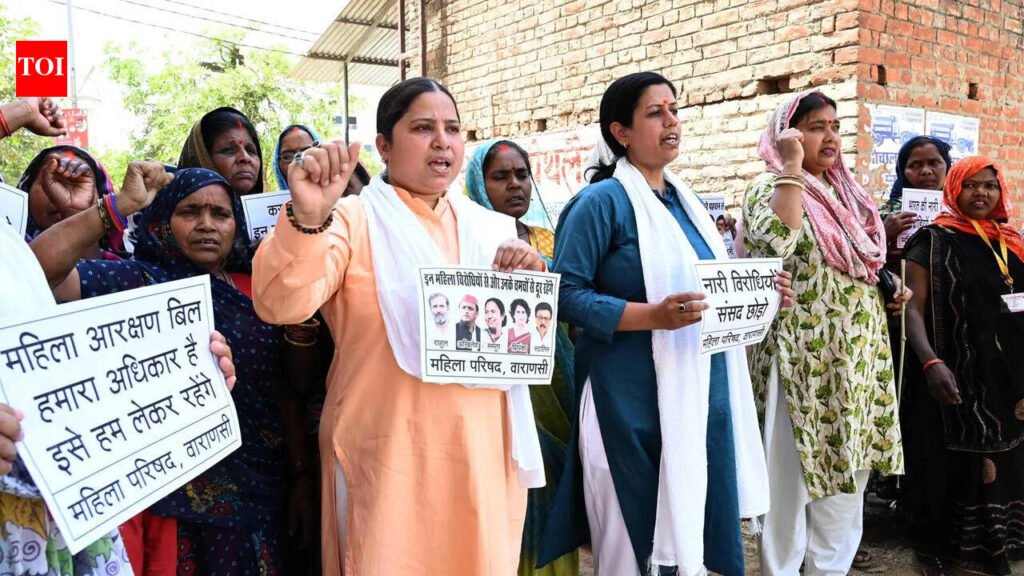 Varanasi: In a protest against opposition parties, a group of women in Varanasi took out a march on Sunday condemning the defeat of the Women’s Reservation Bill in the Lok Sabha. Blaming the opposition for stalling the bill, the protesting women also warned their husbands to stay away from such parties or else they will go on a kitchen strike and stop giving them food.They also burnt effigies of Congress MP Rahul Gandhi.The march titled ‘Benaqab’ (exposed) was taken out under the banner of Mahila Parishad from Subhash Mandir till Munshi Premchand Smriti Dwar in Lamahi. They decried the opposition leaders as anti-women.A placard appealed to the wives of opposition leaders to stop giving roti-pani to their husbands while some placards had a warning for the husbands of the protesters.Addressing protesters, Mridula Jaiswal of BHU’s history department flayed opposition leaders for sporting victory smiles and laughing after insulting women in Parliament by defeating the bill. “They behaved like those who laughed at Draupadi when she was insulted in the court of Kauravas,” said protesters. They thanked PM Narendra Modi for showing commitment towards the Women’s Reservation Bill.They said opposition parties do not want ordinary women to reach Parliament and state assemblies. They asked when Rahul Gandhi and Akhilesh Yadav can allow Priyanka Gandhi Vadra and Dimple Yadav to become MPs then why are stopping common women from becoming MPs and MLAs.
