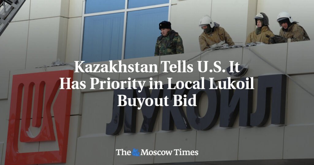 Kazakhstan has notified the United States that it holds the preemptive right to buy out sanctioned Russian oil producer Lukoil’s assets in the country, its energy ministry https://www.interfax.ru/world/1074201told the Interfax news agency Monday.