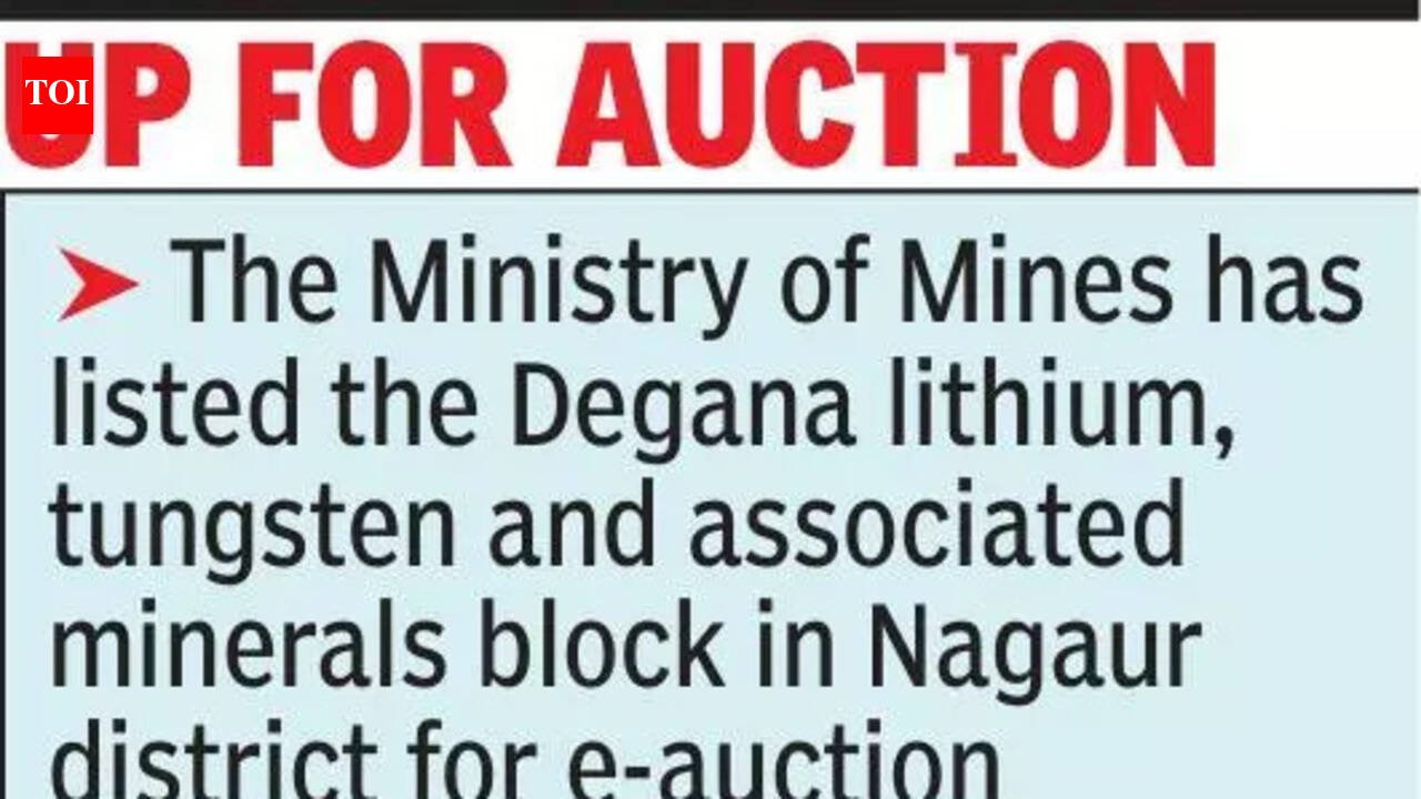 Jaipur: The Union govt has reopened bidding for a critical mineral block in Rajasthan, as India looks to reduce its dependence on China for lithium imports.The Ministry of Mines has invited tenders for mineral concessions for critical and strategic minerals through e-auction. Among the blocks to go under the hammer will be the ‘RAMB Degana Tungsten, Lithium and Associated Mineral Block’ in Nagaur district.Officials said the auction is significant as Rajasthan has emerged as a promising zone for lithium and associated minerals, at a time when India remains heavily dependent on imports, mainly from China.“Lithium, a key component in lithium-ion batteries, is a primary raw material for electric vehicles, which India largely depends on imports for,” an official said. “Exploring domestic lithium will not only boost EV manufacturing but also reduce dependence on imports, which may eventually lower production costs,” he added.Surveys by the Geological Survey of India (GSI) have estimated reserves of nearly 14 million tonnes of lithium and associated minerals in different parts of Rajasthan. Besides lithium, the surveys also focused on tungsten, bismuth, tin and cobalt as part of a wider effort to assess the state’s mineral resources.“The Degana block has been included for a second attempt at auction after the earlier round did not attract a successful bidder. The block contains tungsten, lithium and associated minerals like rubidium, niobium and tin,” the official went on to say.G2-level exploration (the second stage of mineral exploration) has already been completed in Degana by GSI for tungsten, lithium and associated minerals.“Initial geological reports for the Degana Central Block were submitted for review in June 2023. Exploration in Degana NW and Degana SE blocks was also completed in June 2023, while final geological reports were submitted in Dec 2023,” a senior official said.According to the latest tender notice, the auction is being conducted under the Mines and Minerals (Development and Regulation) Act, 1957, and the Mineral (Auction) Rules, 2015.Sale of tender documents will continue from March 30 to May 15, and bids must be submitted by May 20.“Apart from Degana, the Karna REE Block in Balotra district has also been included in the auction list. This block contains several rare earth elements and has been offered under the composite licence category,” the senior official added.