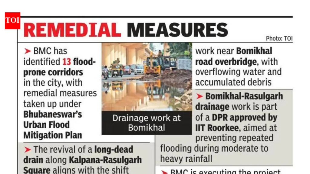 Bhubaneswar: The Bhubaneswar Municipal Corporation (BMC) has started the most critical phase of construction and restoration of a major stormwater drain between Rasulgarh and Kalpana Square, an area known for heavy waterlogging during monsoon.A nearly 200-metre-long stretch from the middle of the Bomikhal road overbridge to a mall in the locality has long remained a trouble spot, with commuters often forced to wade through knee-deep water after even moderate rainfall.Civic officials said the problem persisted for years due to a dead drain that had either collapsed or remained choked due to massive encroachment issues, causing rainwater to flow onto the carriageway and cause inconvenience.At present, BMC teams are facing significant challenges in executing the work, as overflowing water and accumulated debris continue to hinder construction. Despite the difficulties, officials said the drain revival is being fast-tracked well ahead of the monsoon. “This is the most difficult portion of the project. The drain here remained defunct for years, causing waterlogging every monsoon. We are clearing silt, debris and stagnant water simultaneously while reconstructing the drain,” a contractor at the site said.City mayor Sulochana Das said that the storm water drains on the Cuttack-Puri Road between Rasulgarh and Kalpana Square are almost revived on both sides of the stretch. “It was a long-pending project which is nearing completion now,” she said.Local residents, who have endured repeated flooding and traffic snarls in the area, expressed cautious optimism. “Every year during the rains, this stretch becomes difficult to navigate through,” Prakash Jena, a resident of Bomikhal, said.He added that office-goers, schoolchildren and even ambulances get stuck. “If the drain finally starts functioning properly, it will be a huge relief for a majority of people. This is one of the oldest and busiest stretches of the city,” Jena said.Commuters also welcomed the early execution of the work. “Waterlogging is not just an inconvenience but a safety risk. It is good that the work is being taken up before the monsoon instead after the damage is done,” Rita Mohanty, a commuter, said.BMC officials said the revived drain along the entire Rasulgarh-Kalpana Square stretch is likely to be completed by May and will significantly reduce water accumulation on the road, improving traffic flow and public safety during the rains.