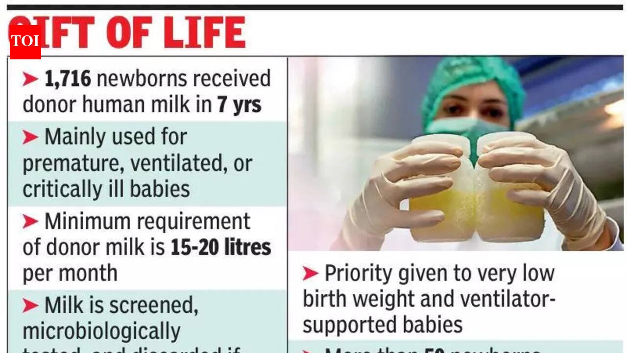 As the milk bank completed seven years on Mar 5, TOI traced its journey at KGMU. In this period, more than 1,700 vulnerable newborns received donor milk at the hospital. Doctors say demand continues to exceed supply, meaning some babies still have to wait.The milk bank was established in 2019 under the guidance of paediatrician Prof Mala Kumar. It provides donor milk for babies whose mothers cannot breastfeed immediately after delivery.“These babies are often extremely premature or critically ill,” said Prof Shalini Tripathi, in charge of the milk bank. “Donor human milk is much easier for them to digest than formula feed. We rarely see vomiting or feeding intolerance in babies who receive it.”Before the milk reaches a newborn, it passes through several safety checks. Donor mothers are first medically screened. The milk is then tested in the laboratory under the supervision of microbiologist Prof Sheetal Verma.“If any bacterial growth is detected during testing, the milk is discarded,” Prof Verma said. “For such fragile babies, ensuring zero contamination is extremely important.”Doctors say counselling mothers plays a key role in encouraging donations. “Conversations among mothers in the wards often encourage others to donate,” Prof Tripathi said. “When one mother comes forward, it motivates others as well.”Each year, more than 50 newborns whose mothers died or were unable to feed them depend entirely on donor milk. In some cases, mothers admitted in hospitals outside the city are counselled over the phone to express and store milk for their babies.Head of paediatrics, Prof SN Singh said donor milk became an important part of neonatal care at the hospital. “For very low birth weight babies and those on ventilator support, donor human milk can significantly improve survival and reduce complications,” he said.The neonatal units at KGMU require around 15-20 lt of donor milk every month, but supply is often lower.Manager of the bank, Dr Anshika Rastogi said strict donor screening criteria and hesitation among mothers reduce the number of eligible donors. Because of the shortage, the milk bank prioritises the sickest babies.Doctors say greater awareness about milk donation could help close the gap and ensure more newborns receive the support.