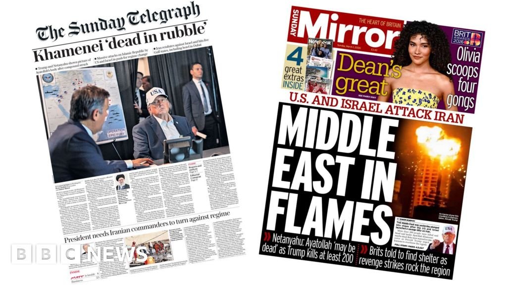 Share Facebook Twitter Pinterest Email Copy Link All of the Sunday papers carry the major world news story on their front pages – the strikes on Iran by the US and Israel. Source link
