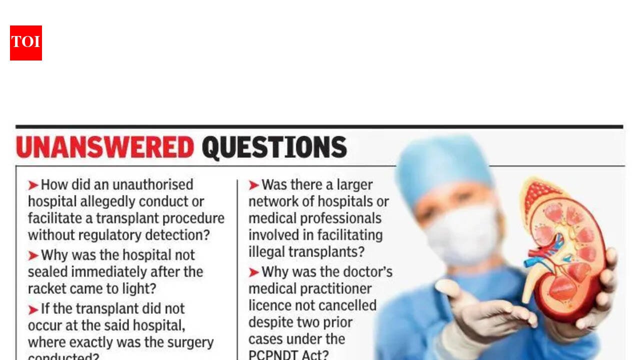 Mohali: Probe into the alleged kidney transplant racket has taken a significant turn, with the Special Investigation Team (SIT) now suspecting that the transplant may not have been conducted at the Kharar-based hospital at all.The SIT, headed by superintendent of police (SP) Manpreet Singh, indicated that the investigators were exploring the possibility that another hospital or an external operation theatre (OT) facility, along with a qualified transplant surgeon, may have been involved and if the transplant was undertaken at the Kharar hospital, then there is a possibility of the involvement of a specialist. Though the hospital, had an ICU, its standards to treat pre or post-transplant are also yet to be established. The officials pointed out that the hospital in question did not possess the mandatory permissions required to carry out kidney transplant procedures under the Transplantation of Human Organs and Tissues Act, 1994. This has raised serious concerns about how such a high-risk and regulated medical procedure could have been attempted or claimed without statutory approvals. The SP said, “The SIT is also examining whether the hospital had constituted the legally required evaluation mechanism, including a panel of transplant experts, a local social worker and a gazetted officer before conducting the kidney transplant. This panel is mandated to verify the legitimacy of donor-recipient relationships and scrutinise financial transactions to rule out any commercial dealings, particularly critical in cases involving non-related donors.” Preliminary findings suggest that the alleged donor is a Nepal national, while the recipient hails from Rajasthan, making the case fall under the “non-relative donor” category that requires stricter scrutiny and clearance from the district- or state-level authorization committee, said the police. Investigators are also seeking a detailed report from the civil surgeon’s office to verify whether any application or approval process was initiated. Adding another layer of concern, the SIT is probing why the accused doctor’s medical licence was not cancelled despite being booked twice earlier under the Pre-Conception and Pre-Natal Diagnostic Techniques (PCPNDT) Act in 2018 and 2023. The authorities reiterated that as per regulations overseen by bodies like the National Organ and Tissue Transplant Organization, no organ transplant can be conducted without prior approval from the designated authorization committee. Applications must be routed through authorised hospitals, and foreign donors require additional clearances, including embassy verification. The investigation continues to widen, with officials not ruling out the involvement of a broader interstate or cross-border network. The SIT has assured that all angles, including regulatory lapses and possible collusion, will be thoroughly examined. BOXHospital operating without any permission went unnoticed Dr Manpreet has been operating the said hospital in Kharar, which does not have any requisite permission to run a hospital, went unnoticed. Civil surgeon Dr Sangeeta Jain said, “We had allowed licence under the PNDT Act in her mother’s name and land in the name of Dr Manpreet, but later when teams raided in 2023, an ultrasound machine was sealed and her mother’s hospital operation licence under the PNDT Act was terminated. As the land given for establishing a hospital remained in the name of Dr Manpreet and another person who have now been booked, but we do not know whether she was conducting any surgeries or not or she had engaged any other specialists to do so. This will only be ascertained once she is arrested.” However, she said the hospital premises had now been sealed and ensured that no activity was undertaken at the premises. The civil surgeon also said once the SIT probe was completed, a report would also be sent to the Punjab Medical Council and the Indian Medical Association, informing them of the illegal activity undertaken at the hospital.