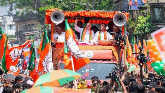 After addressing a rally at Hazra, barely 300 metres from the chief minister’s Kalighat residence, Union home minister Amit Shah accompanied Adhikari—who is contesting chief minister Mamata Banerjee at her Bhabanipur seat—along with Rashbehari candidate Swapan Dasgupta, Ballygunge seat nominee Shatarupa, and Santosh Pathak from Chowringhee to the Alipore Survey Building, where they filed their papers on Thursday.