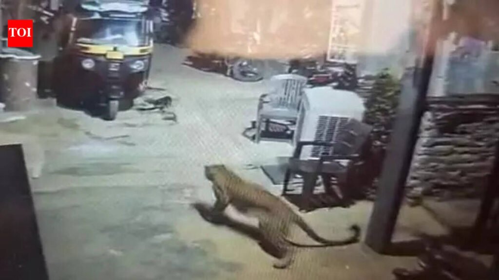 The leopard roaming the streets of Janata Plot was captured on a local home’s CCTV camera last night. This morning, residents who noticed the CCTV footage were alarmed. Hampi has rocky hills where leopards reside, but the animal’s intrusion into the residential area has caused concern.Residents urged forest department officials to capture the leopard, and relocate it. “We’re scared that a leopard entered the residential area in Hampi. Many domestic and foreign tourists visit the World Heritage Site, Hampi, but there was no threat from wild animals like leopards. The authorities concerned should shift these dangerous animals from Hampi to boost tourism,” appealed Ramesh S, a resident of Prakash Nagar, Hampi.Hosapete RFO Kaushik Dalavai clarified that it is common for leopards to be spotted in Hampi area. The rocky caves in the region are suitable for their habitation. So far, instances of leopards causing harm to anyone’s life or injuring people have not been reported, he said. “Therefore, there is no need for people to panic. Since dogs are easy prey for leopards, they sometimes visit residential areas and then leave. It cannot be said that their habitat is fixed in that place,” he added.