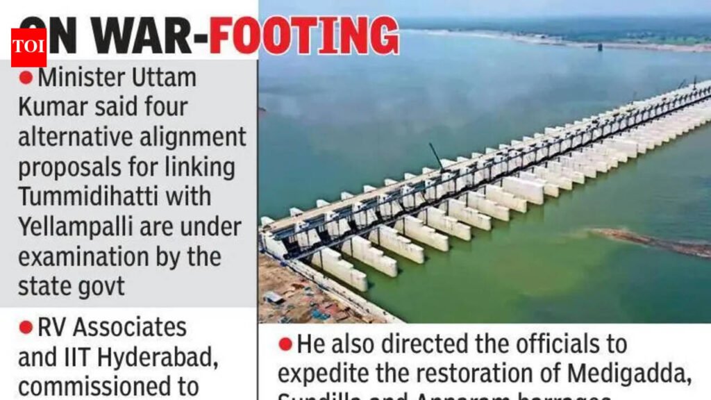 Hyderabad: The Telangana govt will initiate a dialogue with the Maharashtra govt to resolve the outstanding issues and take up the construction of a barrage at Tummidihatti as part of the Pranahita-Chevella project.Chief minister A Revanth Reddy instructed the irrigation officials to start preparations to hold talks with Maharashtra, seeking permission to construct the barrage at a height of 150 metres.At a high-level meeting at MCRHRD Institute, the officials and irrigation experts suggested that constructing the Tummidihatti barrage at a height of 150 metres would enable the utilisation of at least 100 tmcft of water and fulfil the interests of Telangana.The authorities said that Maharashtra already agreed to the construction of the barrage at a height of 148 metres. Engineering experts noted that building the barrage at 152 metres would result in more submergence in Maharashtra territory, and hence the height of 150 metres would help to draw water at a lower cost.In the PowerPoint presentation, the officials brought to the attention of the CM key aspects such as the optimal height for constructing the Tummidihatti barrage and the volume of water that could be utilised based on different construction heights.The irrigation officials also apprised the CM that the govt spent approximately 11,000 crore on the Pranahita-Chevella project, and canal construction has been completed in several areas. Also, 71.5 km of canal work has already been executed.CM Revanth Reddy stressed that the construction of the barrage at 150 metres height would not significantly affect the submergence of areas in Maharashtra and also assured that the govt is ready to provide compensation to the displaced.The barrage would ensure the availability of water for both irrigation and drinking needs in the upland regions of Telangana, including Adilabad. The CM emphasised that the barrage should facilitate water flows to Sripada Yellampalli Reservoir via gravity flow at a minimal cost.In view of the BJP govt in Maharashtra, CM Revanth instructed minister Uttam Kumar Reddy to immediately write a letter to Kishan Reddy, requesting him to persuade the Maharashtra govt and safeguard Telangana interests.Reviewing the progress of the restoration of Medigadda, the Chief Minister ordered the officials to expedite the completion of the geo-testing operations for Medigadda barrage and complete the works before the start of the monsoon season.Earlier during the day, minister Uttam said four alternative alignment proposals for linking Tummidihatti with Yellampalli are under examination by the state govt. RV Associates and IIT Hyderabad, commissioned to study the options, have submitted their joint recommendations, which are now being scrutinised for feasibility, cost and efficiency.“The Congress govt is fully committed to the construction of the Pranahita-Chevella project in line with the promises made in its election manifesto. Each proposal is being examined in detail for its cost, advantages and disadvantages. A final decision will be taken after a review meeting with the CM in the evening,” Uttam said.He also directed the officials to expedite the restoration of Medigadda, Sundilla and Annaram barrages. “All necessary tests must be completed before the onset of the monsoon. The Standard Penetration Tests (SPT) must be conducted every 1.5 metres. The permeability tests must be carried out every 3 metres. Even if the bore drilling taken up as part of the exercise hits rock, the holes must be drilled at least 5 metres deep. The coordination committee appointed for barrage restoration works should visit the sites immediately and fix a clear timeline,” he added.