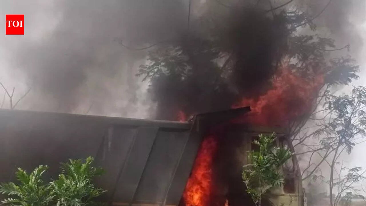 Hyderabad: A lorry carrying gravel caught fire near Antharam gate on the Shadnagar–Shabad road on Friday, triggering brief panic among motorists. However, the driver escaped safely, and no injuries were reported, officials said.According to officials, the vehicle was travelling from Shadnagar to Shabad when the engine suddenly caught fire. Acting swiftly, the driver pulled the lorry over to the roadside and got down from the vehicle. “Prima facie, we suspect the fire started due to mechanical heat. However, further investigation is underway,” said an officer from Shadnagar police station. A fire tender from Shadnagar fire station rushed to the spot and brought the flames under control.