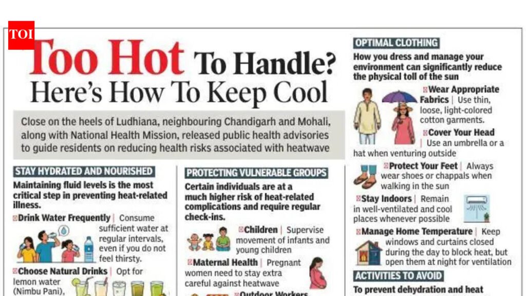 Ludhiana: Residents grappled with intense heat on Monday as maximum temperature hovered around the 40 degrees Celsius mark. The meteorological department has issued a heatwave alert for the district for the next few days.According to the Met department, maximum (day) temperature in Ludhiana was recorded at 39.4 degrees Celsius, which is 3.9 degrees Celsius above normal, but 0.6 degrees lower than the previous day. On Sunday, Ludhiana recorded its highest day temperature of the year so far. Clear skies contributed to the intense heat as the sun blazed with no cloud cover to mellow it down. Minimum (night) temperature was recorded at 19.6 degrees Celsius, which is 1.6 degrees above normal and 0.6 degrees higher than the day before.With temperature surging several degrees above normal, the meteorological department has issued a yellow alert for Ludhiana district for the next four days, warning of heat wave conditions. A yellow alert is issued to keep various departments updated and prepared for adverse weather conditions.The department has forecast mainly clear skies on Tuesday and partly cloudy conditions for the following three days. The outlook for Saturday and Sunday indicates mainly clear skies as well.As per forecasts available on the Met department website, maximum temperature is expected to rise further, reaching 43 degrees Celsius by Thursday. Day temperature is likely to remain around that level over the subsequent days. Minimum temperature is also expected to increase, reaching 24 degrees Celsius by Thursday, remaining constant over the next two days and possibly rising to 25 degrees Celsius by Sunday.Residents said the heat has significantly affected daily routines. Sanjay Kumar, a city resident, said the sun was particularly harsh in the daytime, prompting him to stay indoors. He added that he stepped out only in the evening to attend to essential work.A few residents said they were considering short trips to cooler destinations. With the heat wave warning in place, residents have been advised to avoid direct exposure to the sun during peak hours and take necessary precautions to stay hydrated.