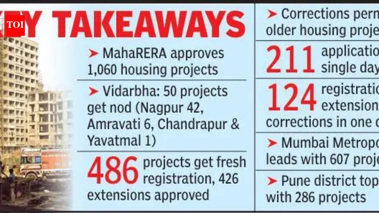 Nagpur: Giving a major pre-festive boost to Maharashtra’s real estate sector, Maharashtra Real Estate Regulatory Authority approved 1,060 housing projects ahead of Gudi Padwa, reflecting a surge in activity as developers tap into one of the most auspicious periods for property investment.Of the total approvals, 486 projects were granted fresh registration numbers, 426 received extensions based on revised completion timelines, and 148 older projects were allowed corrections in their proposals, a statement released by the authority’s media advisor stated. The regulator processed a substantial number of applications in the run-up to the festival, including 211 clearances in a single day.Officials said the approvals were expedited through round-the-clock efforts. A day before Gudi Padwa, 124 projects received registration numbers, 53 were granted extensions, and 34 proposals were approved with corrections.“Padwa, considered among the three-and-a-half auspicious mahurats, traditionally sees heightened real estate activity, with developers aligning project launches to coincide with favourable sentiment among homebuyers,” MahaRERA media advisor Ram Dontonde says.Regionally, the Mumbai Metropolitan Region accounted for the largest share, with 607 projects, followed by Pune with 321. Khandesh saw 63 approvals, Vidarbha 50, Marathwada 14, and Dadra and Nagar Haveli 5.At the district level, Pune led with 286 projects, followed by Mumbai Suburban (196), Thane (185), and Raigad (110), each recording triple-digit project activity.MahaRERA said the approvals were granted only after detailed scrutiny to ensure compliance with legal, technical, and financial norms. The regulator emphasised that all projects were evaluated under established criteria before being cleared.As per officials, the surge in approvals underscores both the seasonal momentum in housing demand and regulatory push to streamline project clearances, particularly during peak buying periods that shape annual trends in the state’s property market.