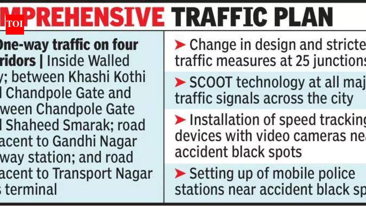 The plan also recommends circular traffic movement on congested stretches, including the road beside the Gandhi Nagar railway station and the stretch between Khasha Kothi Circle to Chandpole Gate on Station Road. In addition, the CMP has demarcated 25 junctions that see traffic congestion. The CMP has recommended a SCOOT-based traffic management system for these.“SCOOT is a real time traffic responsive computer model that receives live vehicle presence measurements from detectors on-street. With this data, the technology automatically adjusts the traffic signal timings,” another official added.